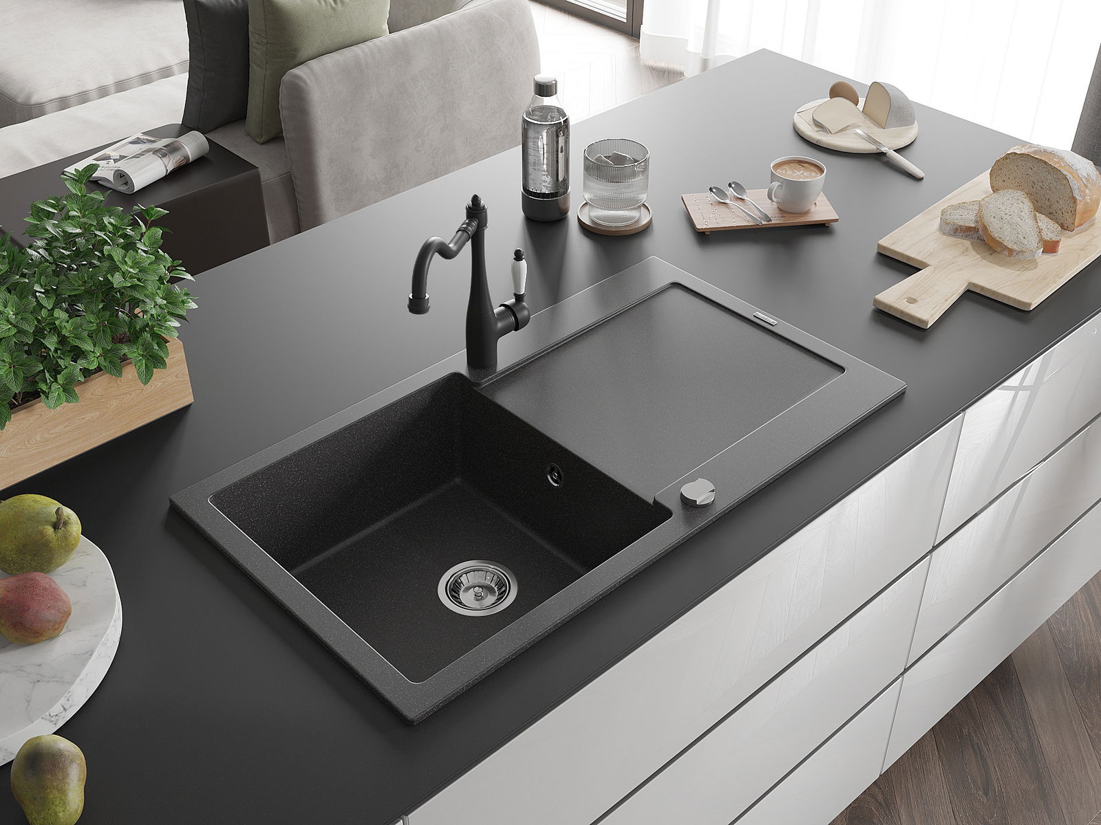 Povrch umývadla je odolný voči škvrnám a sfarbeniu, vďaka čomu sa ľahko čistí a zachováva si svoju farbu po dlhú dobu. Estetický a prakticky dopĺňajúci každú kuchyňu.