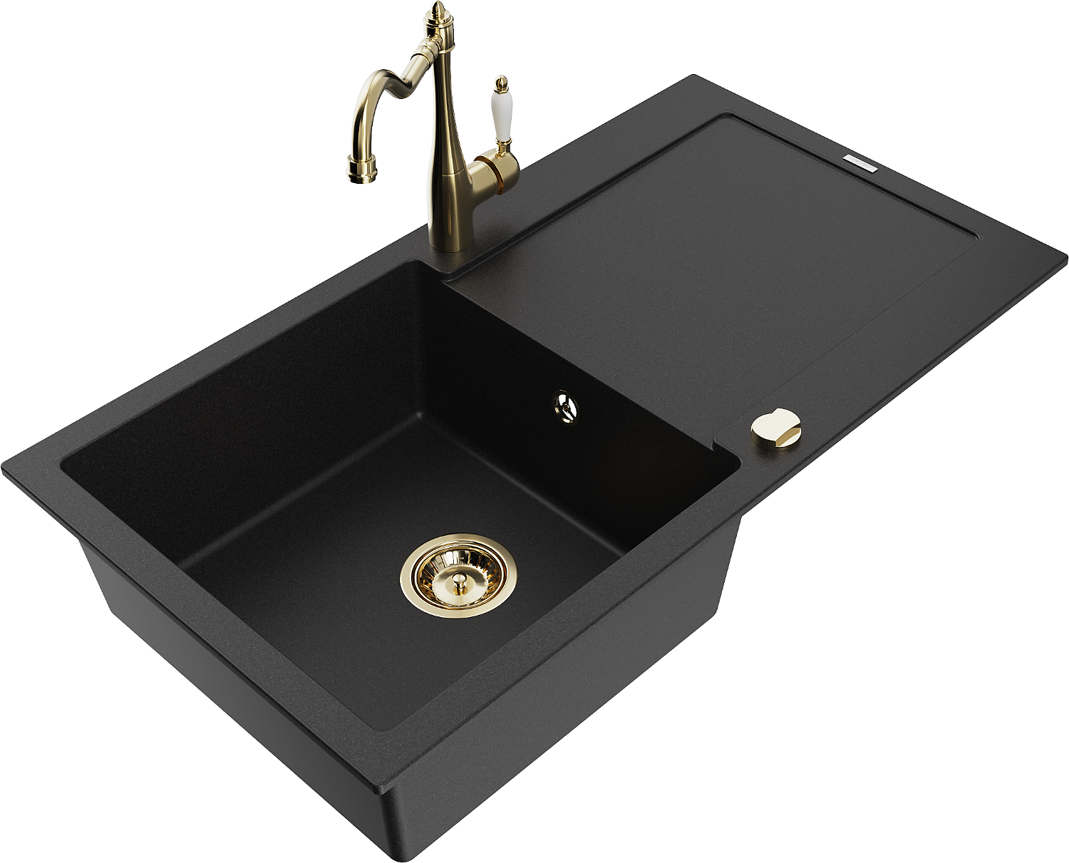 Mexen Leo granitový drez 1-komorový s odkvapkávačom a kuchynskou batériou Carla, čierny - 6501-77-670700-50