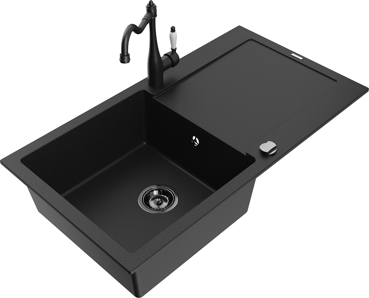 Mexen Leo granitový drez s 1 komorou s odkvapkávačom a kuchynskou batériou Carla, čierny - 6501-77-670700-70-B