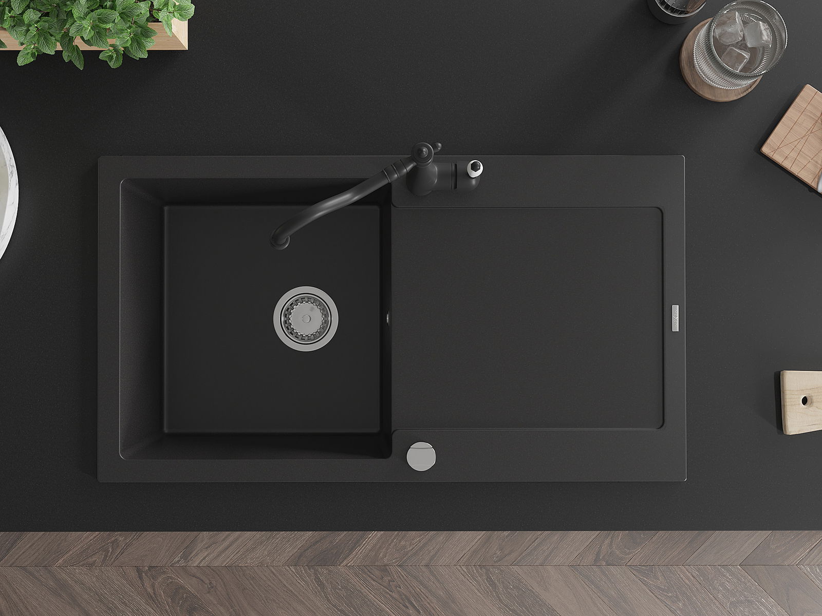 Povrch umývadla je odolný voči škvrnám a sfarbeniu, vďaka čomu sa ľahko čistí a zachováva si svoju farbu po dlhú dobu. Estetický a prakticky dopĺňajúci každú kuchyňu.