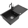 Mexen Leo žulový kuchynský drez s 1 komorou a odkvapkávačom a kuchynská batéria Carla, čierna - 6501-77-670700-70