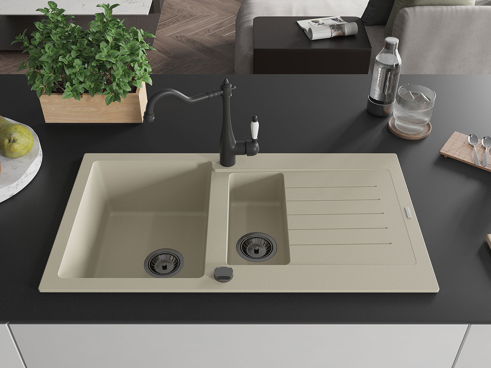 Povrch umývadla je odolný voči škvrnám a sfarbeniu, vďaka čomu sa ľahko čistí a zachováva si svoju farbu po dlhú dobu. Estetický a prakticky dopĺňajúci každú kuchyňu.