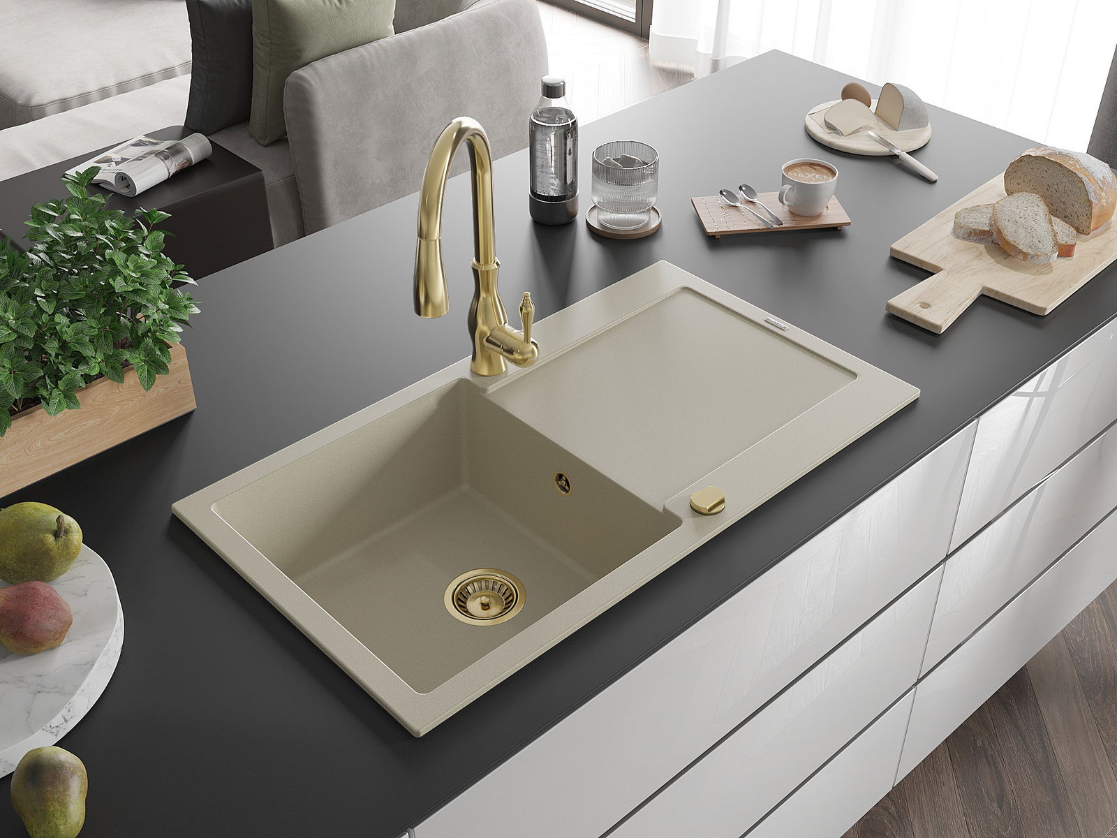 Povrch umývadla je odolný voči škvrnám a sfarbeniu, vďaka čomu sa ľahko čistí a zachováva si svoju farbu po dlhú dobu. Estetický a prakticky dopĺňajúci každú kuchyňu.