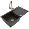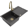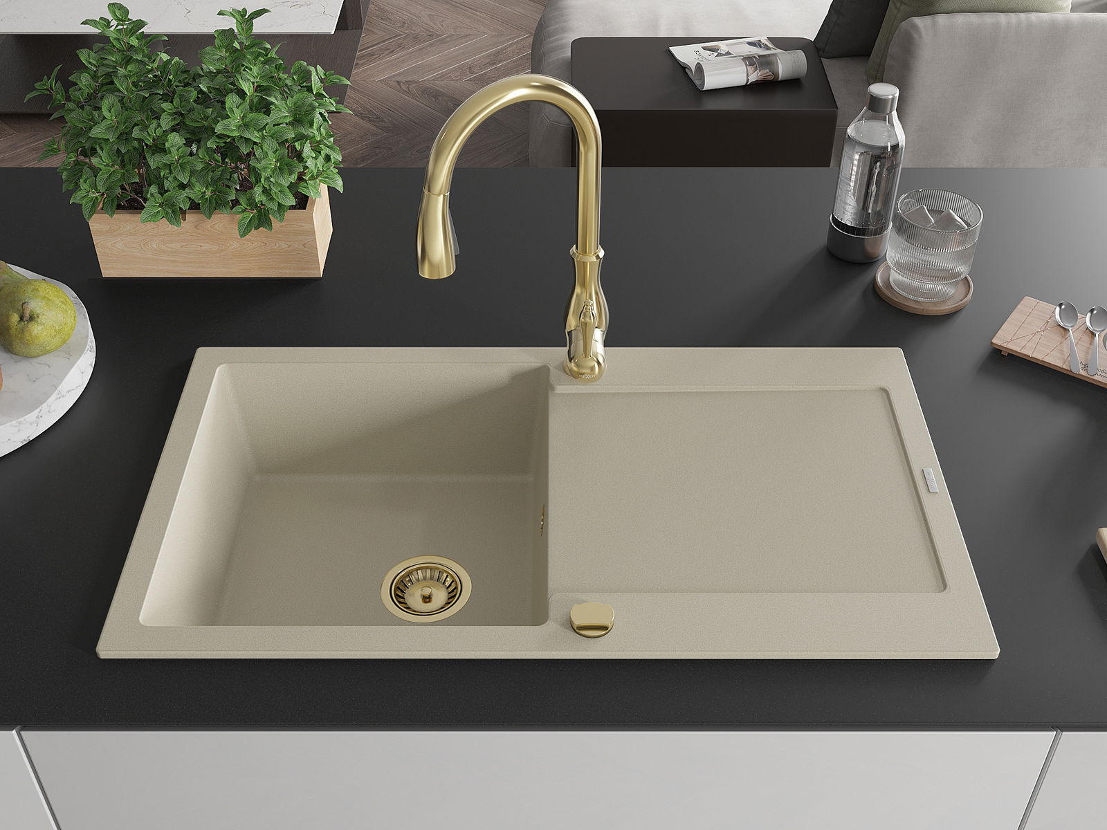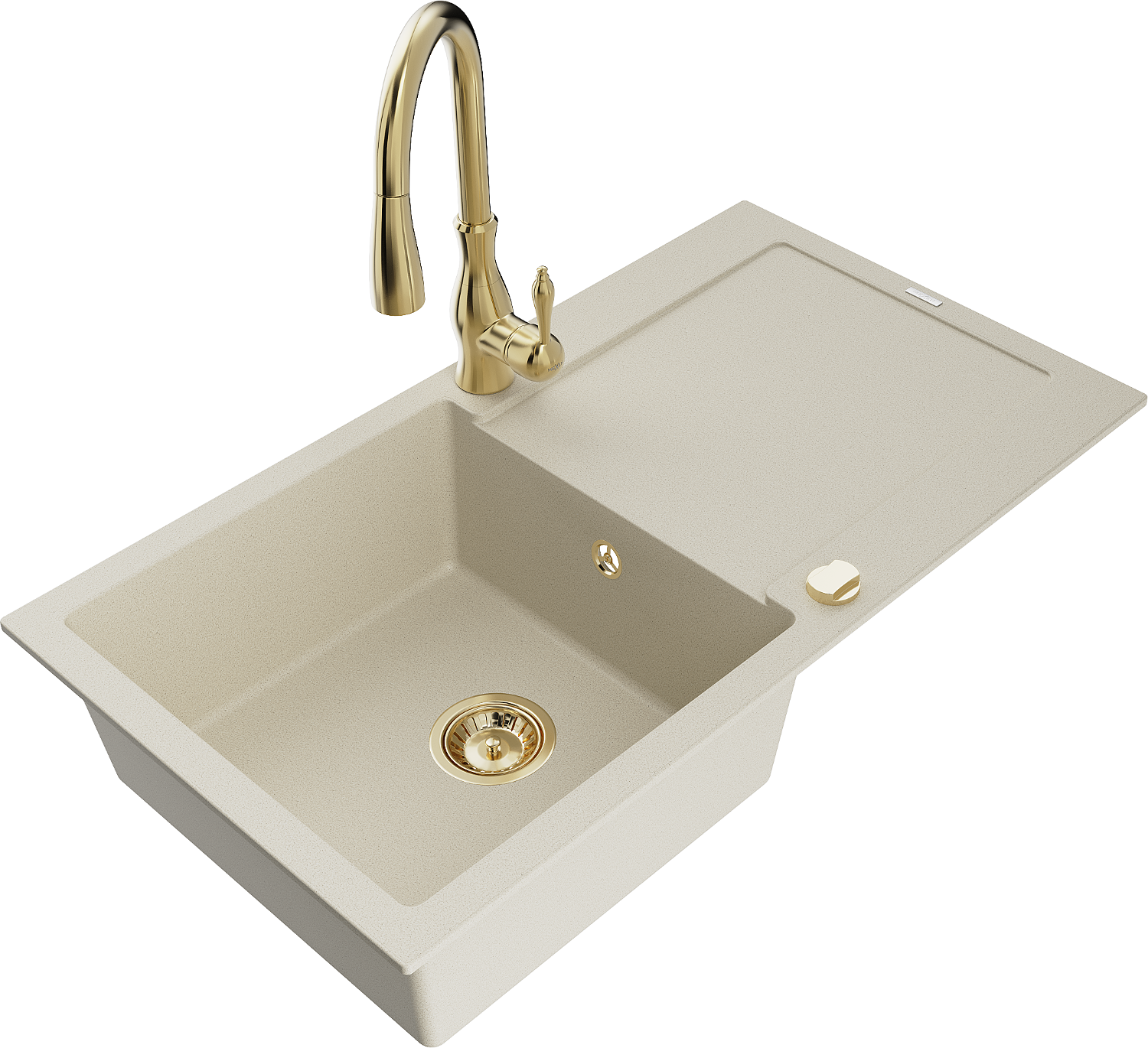 Mexen Leo granitový drez 1-komorový s odkvapkávačom a kuchynskou batériou Savita, béžový - 6501-69-672601-50