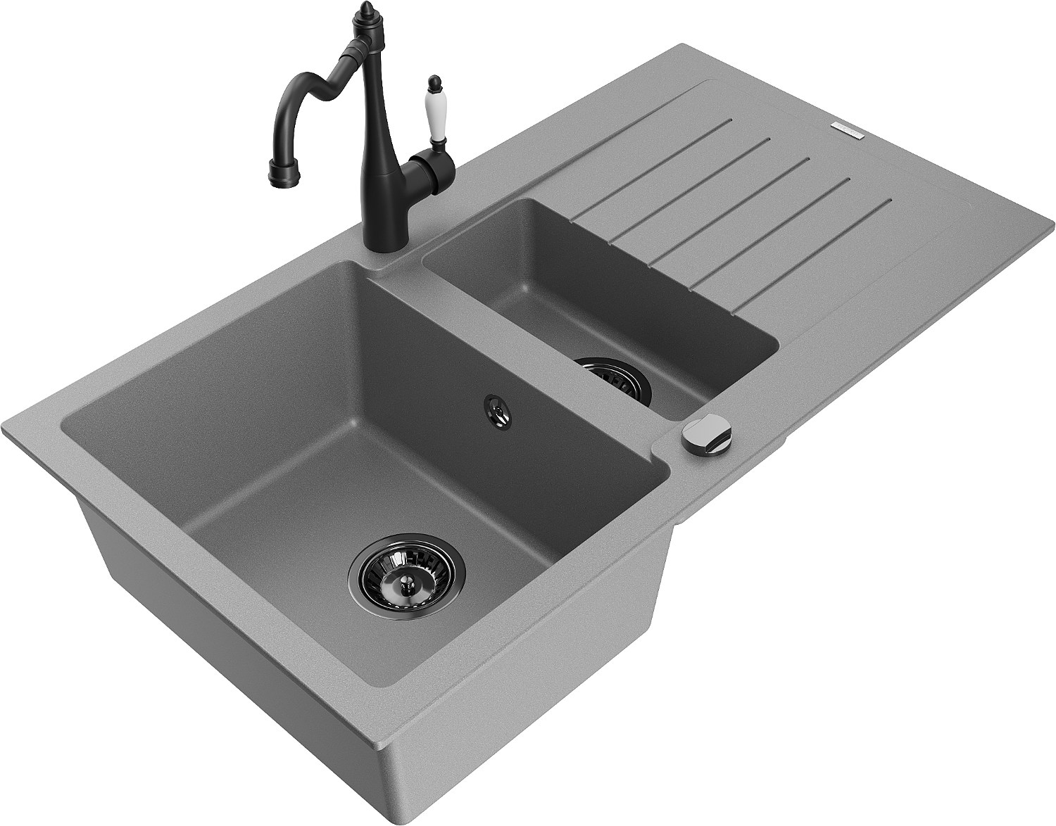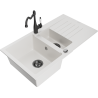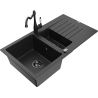 Mexen Matias žulový drez 1,5-komorový s odkvapkávačom a kuchynskou batériou Carla, sivý - 6502-71-670700-70-B