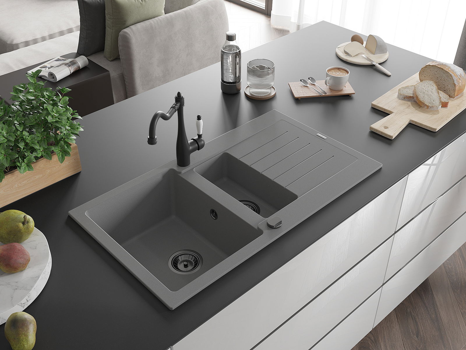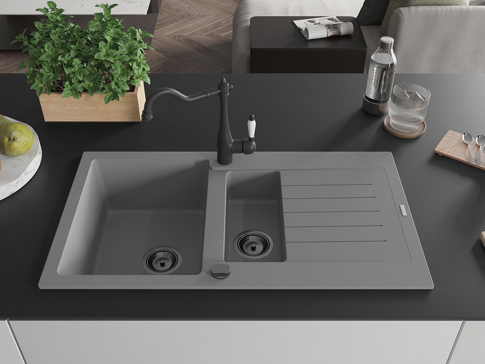 Drez bol vyrobený z vysoko kvalitného granitu. Predstavuje elegantný a predovšetkým praktický doplnok každej kuchyne, nezávisle od jej štýlu. Vysoká kvalita a trvácnosť granitu zaručujú mnohoročné používanie.