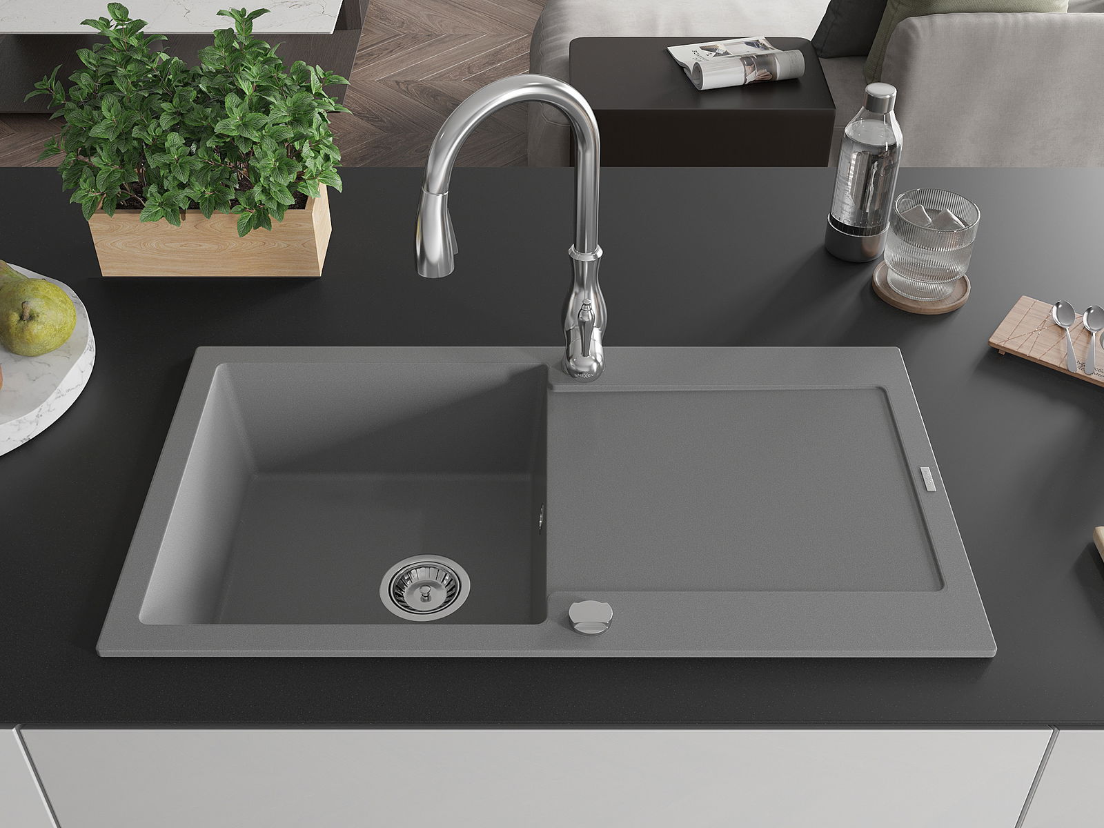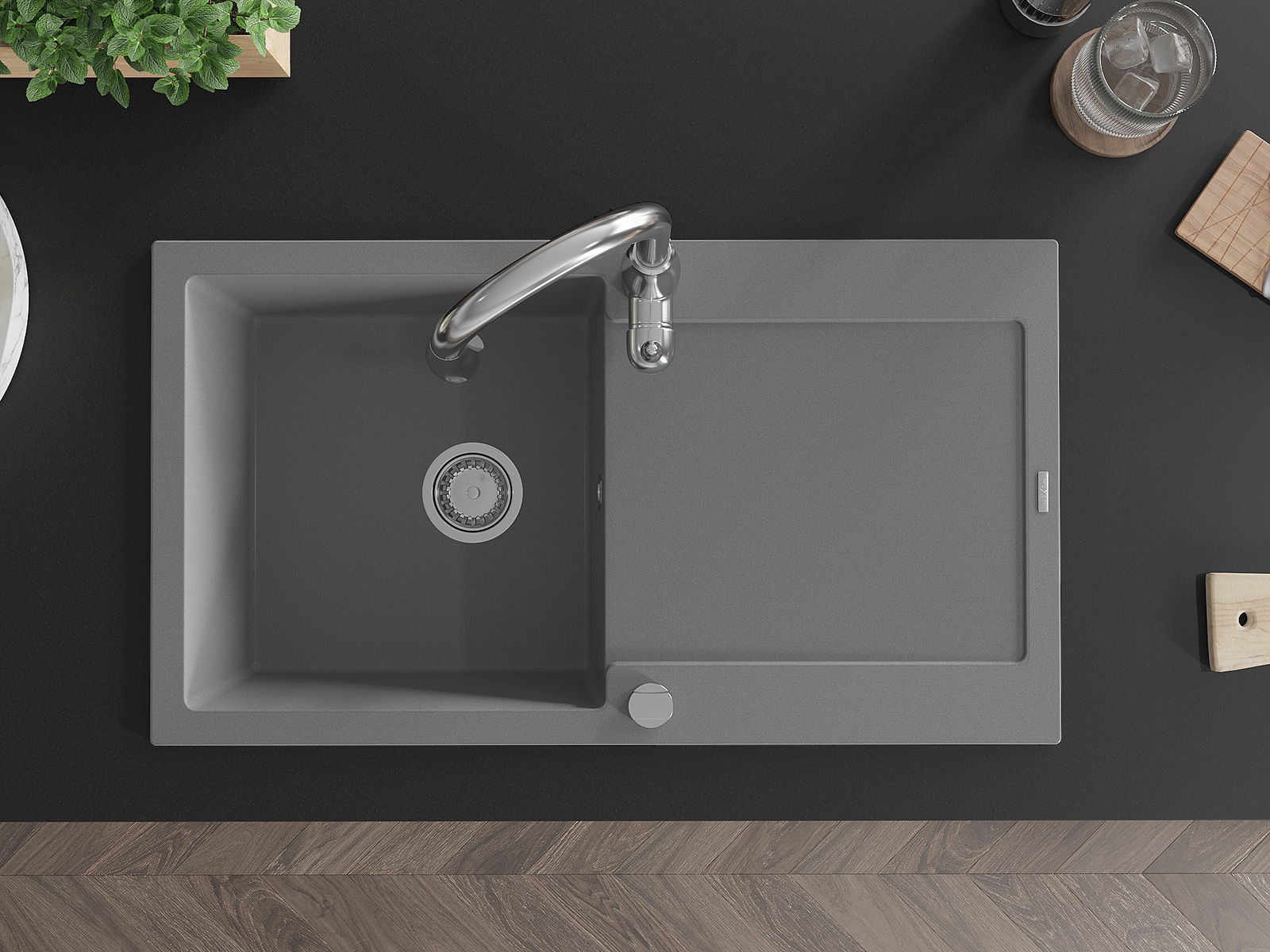 Povrch umývadla je odolný voči škvrnám a sfarbeniu, vďaka čomu sa ľahko čistí a zachováva si svoju farbu po dlhú dobu. Estetický a prakticky dopĺňajúci každú kuchyňu.