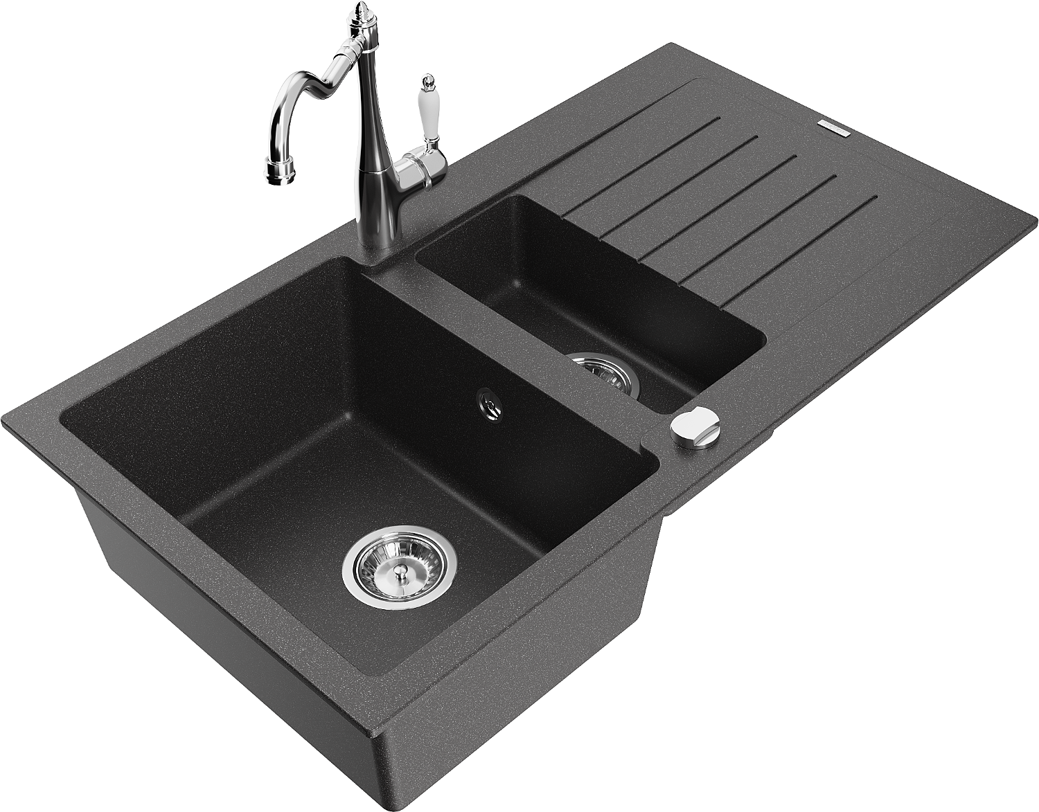 Povrch kuchynského drezu je odolný voči škvrnám a zafarbeniu, vďaka čomu sa ľahko udržiava a zachováva svoju farbu počas dlhého obdobia používania. Estetický a praktický doplnok pre každú kuchyňu.