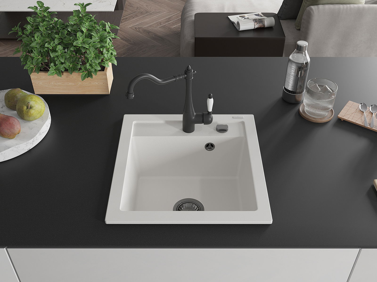 Povrch umývadla je odolný voči škvrnám a sfarbeniu, vďaka čomu sa ľahko čistí a zachováva si svoju farbu po dlhú dobu. Estetický a prakticky dopĺňajúci každú kuchyňu.