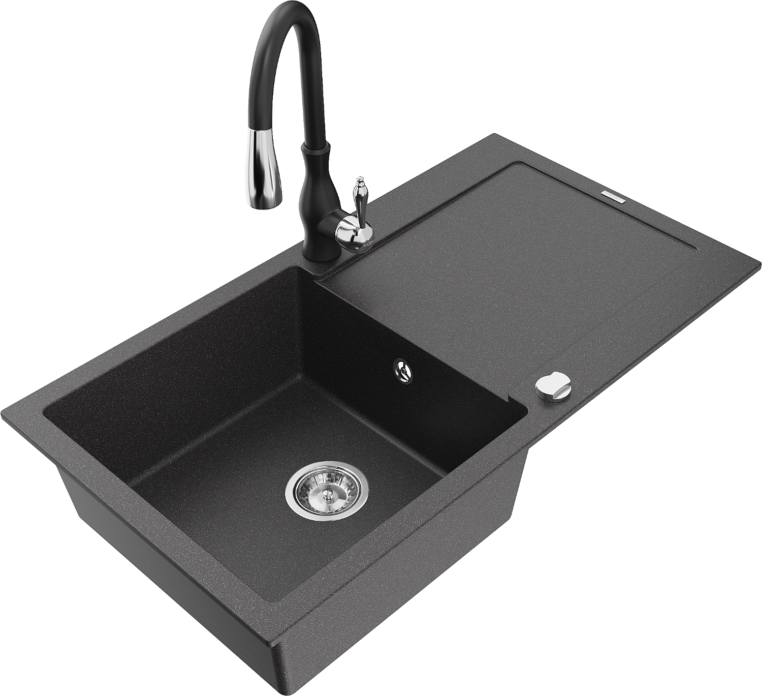Mexen Leo žulový drez s jednou komorou a odkvapkávačom a kuchynskou batériou Savita, čierny so škvrnami - 6501-76-672601-70