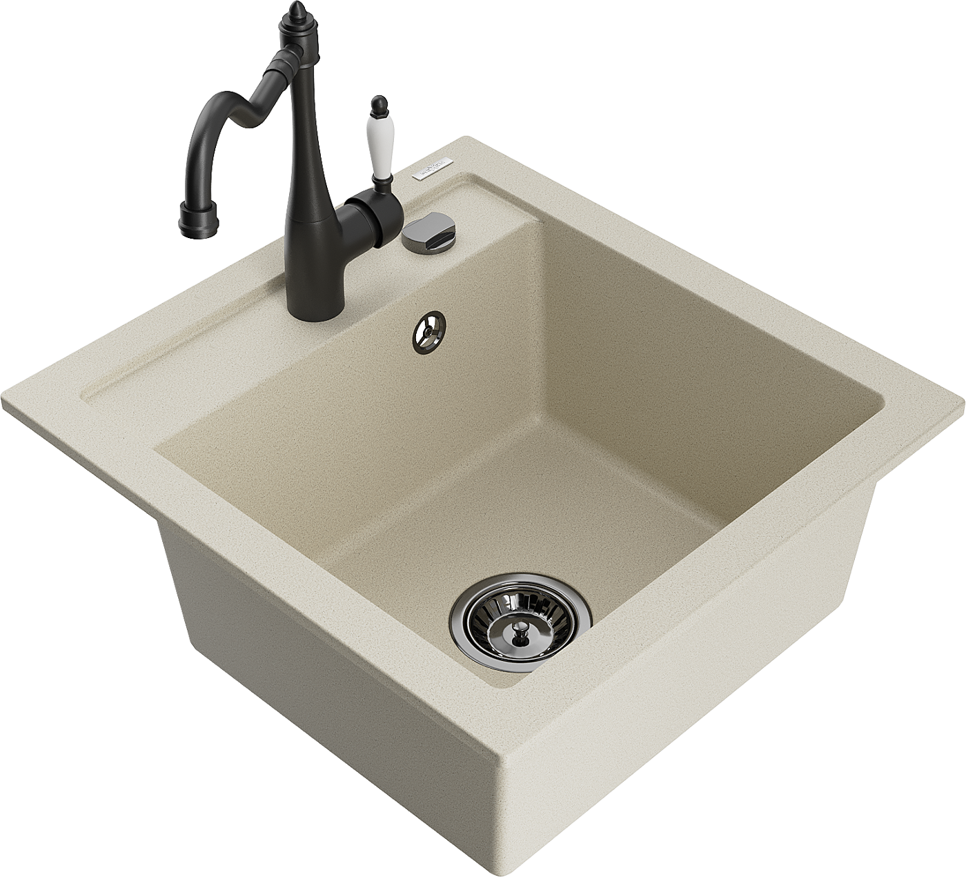 Povrch umývadla je odolný voči škvrnám a sfarbeniu, vďaka čomu sa ľahko čistí a zachováva si svoju farbu po dlhú dobu. Estetický a prakticky dopĺňajúci každú kuchyňu.