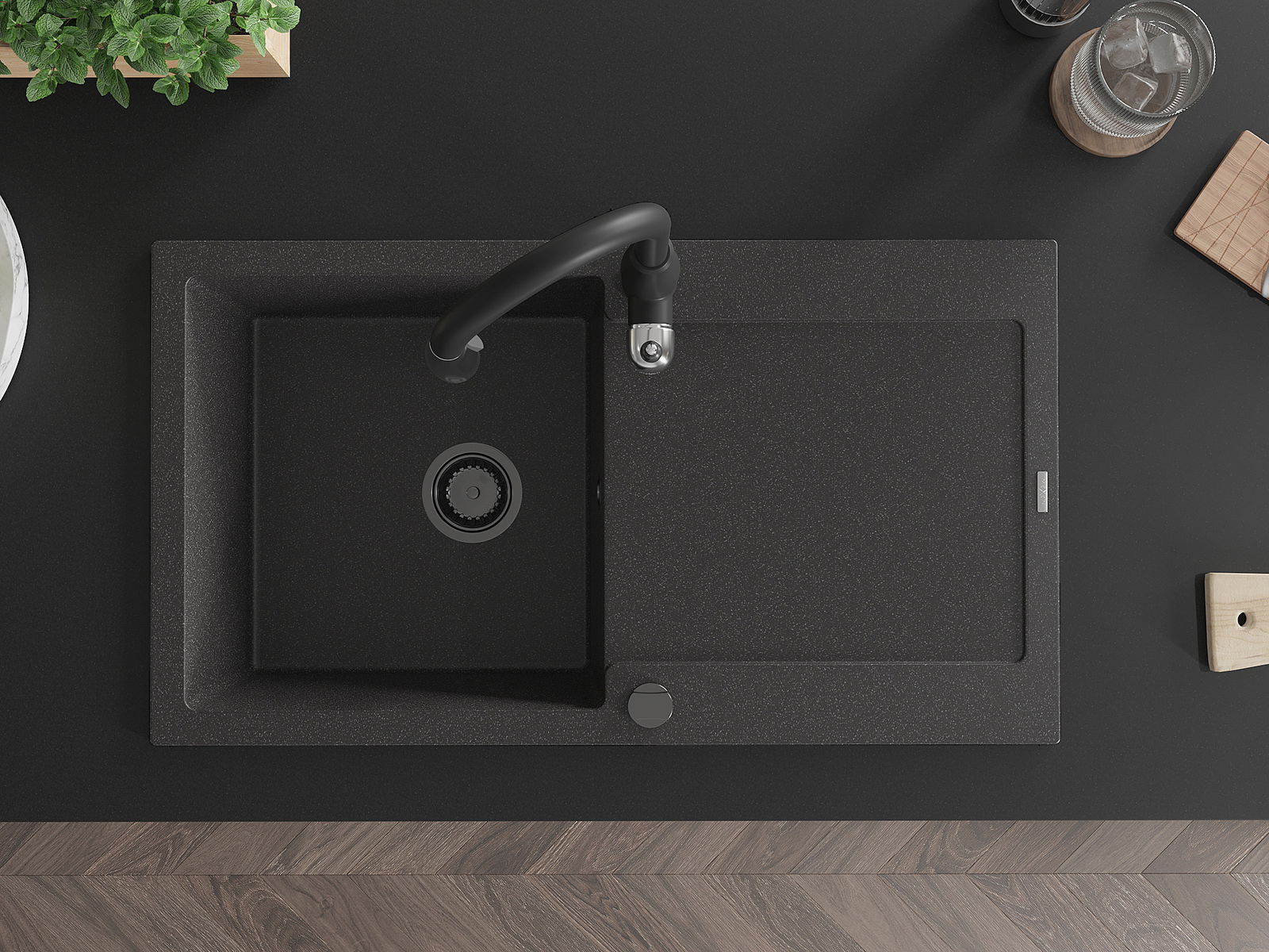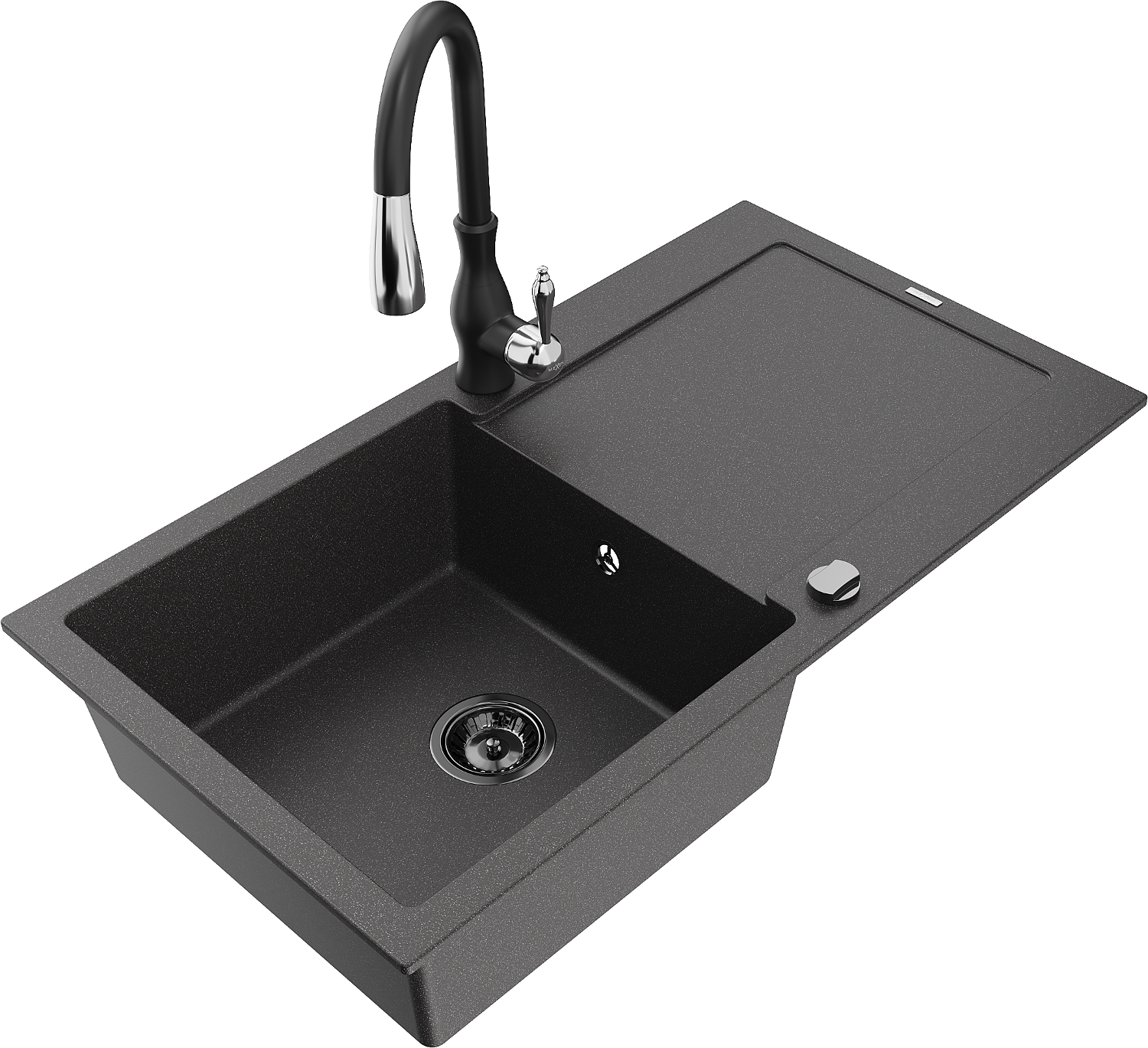Povrch kuchynského drezu je odolný voči škvrnám a zafarbeniu, vďaka čomu sa ľahko udržiava a zachováva svoju farbu počas dlhého obdobia používania. Estetický a praktický doplnok pre každú kuchyňu.