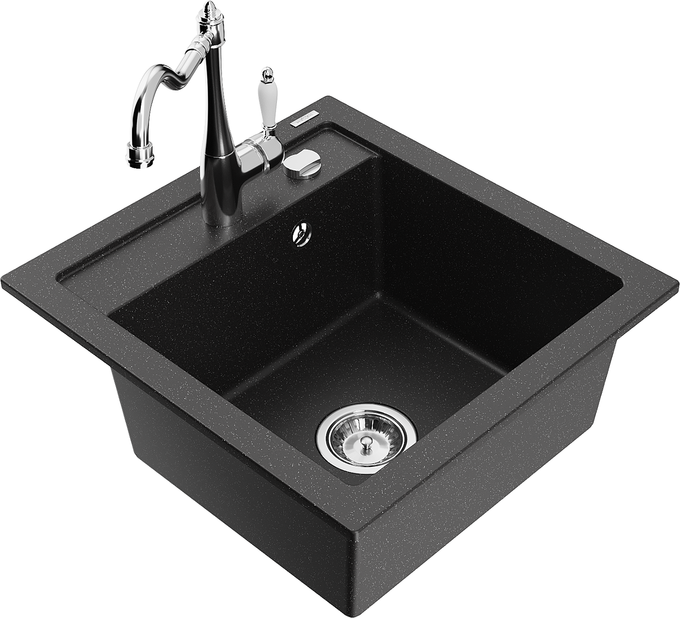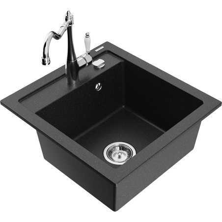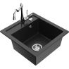 Mexen Vito žulový drez s 1 komorou s kuchynskou batériou Carla, čierny/strieborný metalík - 6503-73-670700-00