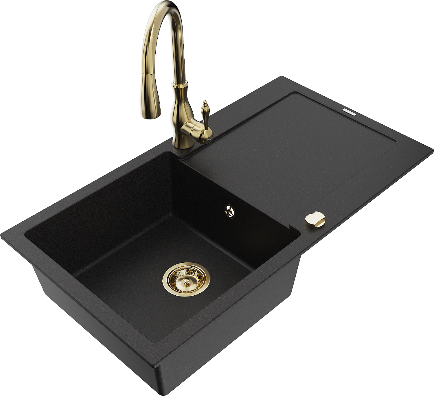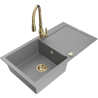Mexen Leo žulový kuchynský drez 1-komorový s odkvapkávačom a kuchynskou batériou Savita, čierny - 6501-77-672601-50