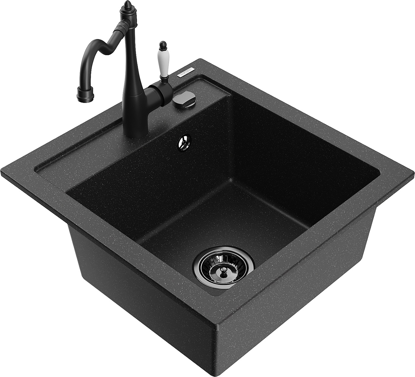Mexen Vito žulový kuchynský drez 1-komorový s kuchynskou batériou Carla, čierny/strieborný metalik - 6503-73-670700-70-B