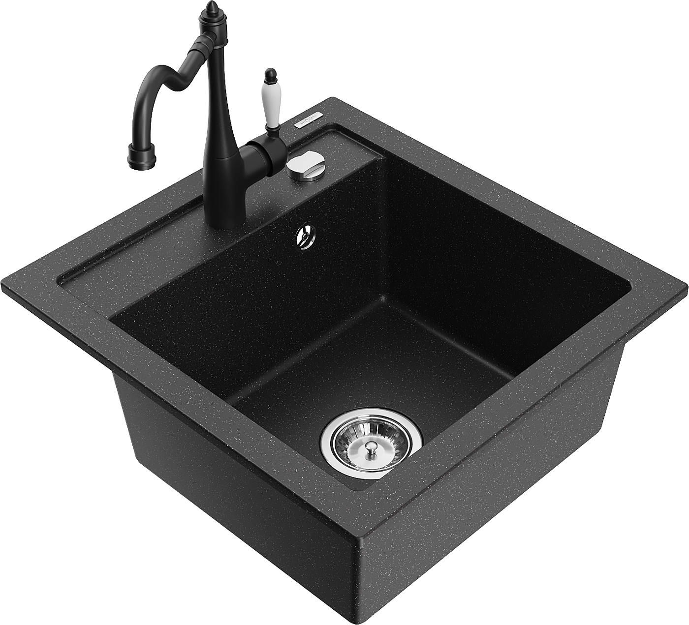 Mexen Vito kuchynský drez z granitu, 1-komorový s kuchynskou batériou Carla, čierny/strieborný metalik - 6503-73-670700-70