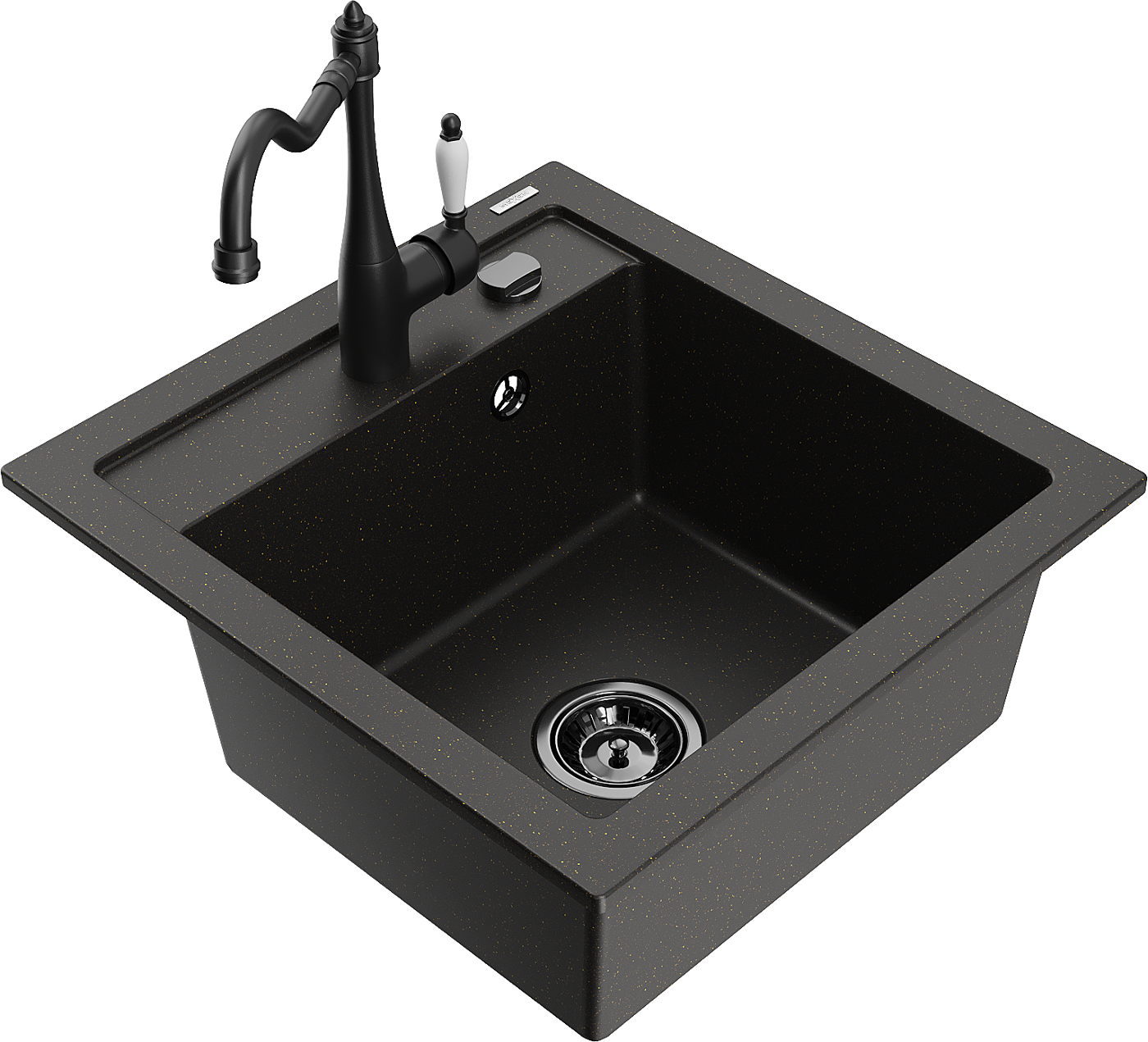 Mexen Vito žulový drez 1-komorový s kuchynskou batériou Carla, čierny/zlatý metalík - 6503-75-670700-70-B