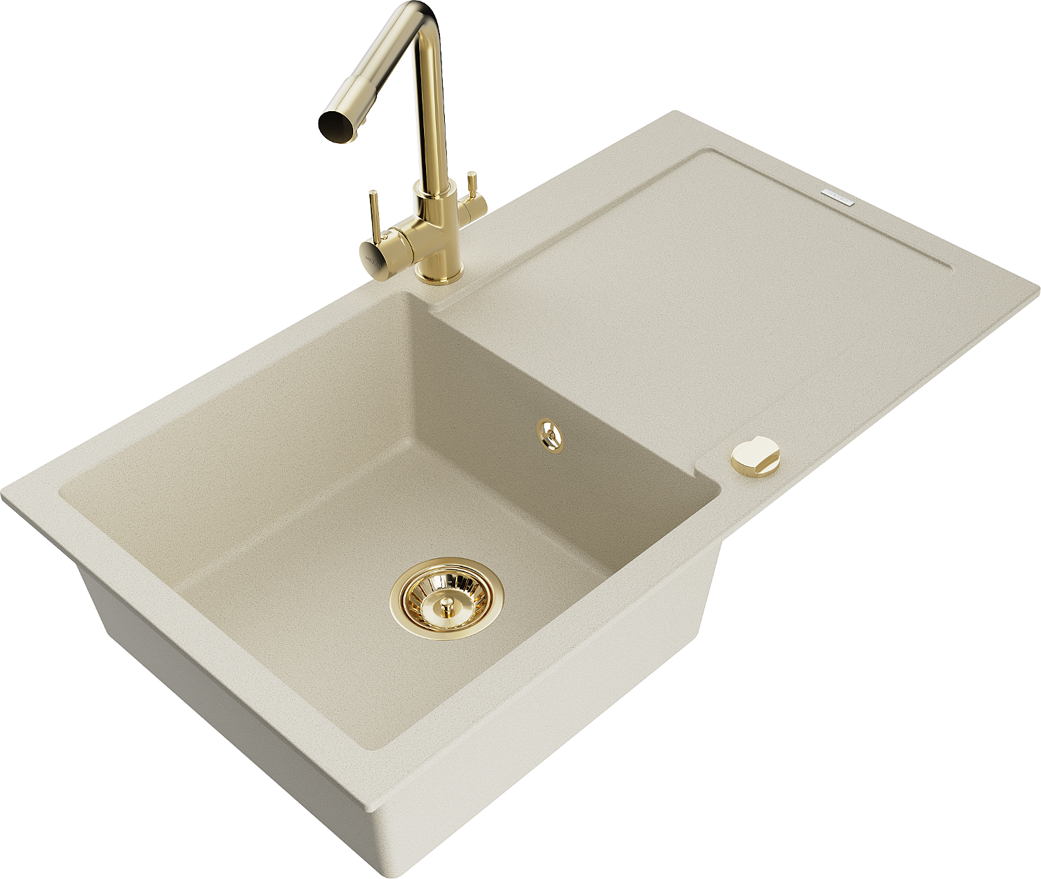 Mexen Leo žulový drez 1-komorový s odkvapkávačom a kuchynskou batériou Duero, béžový- 6501-69-671600-50