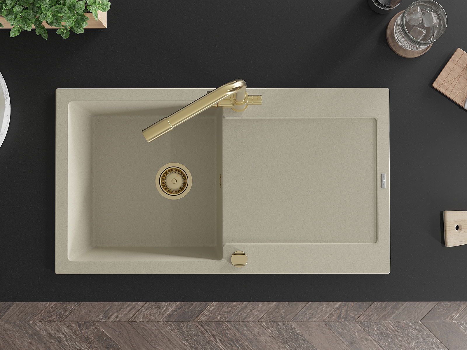 Povrch umývadla je odolný voči škvrnám a sfarbeniu, vďaka čomu sa ľahko čistí a zachováva si svoju farbu po dlhú dobu. Estetický a prakticky dopĺňajúci každú kuchyňu.