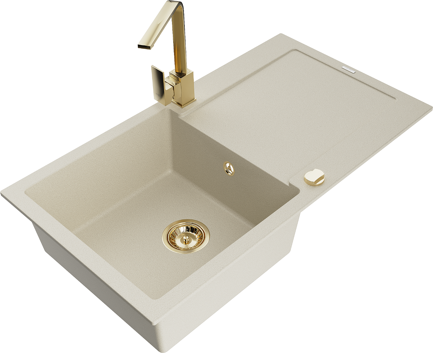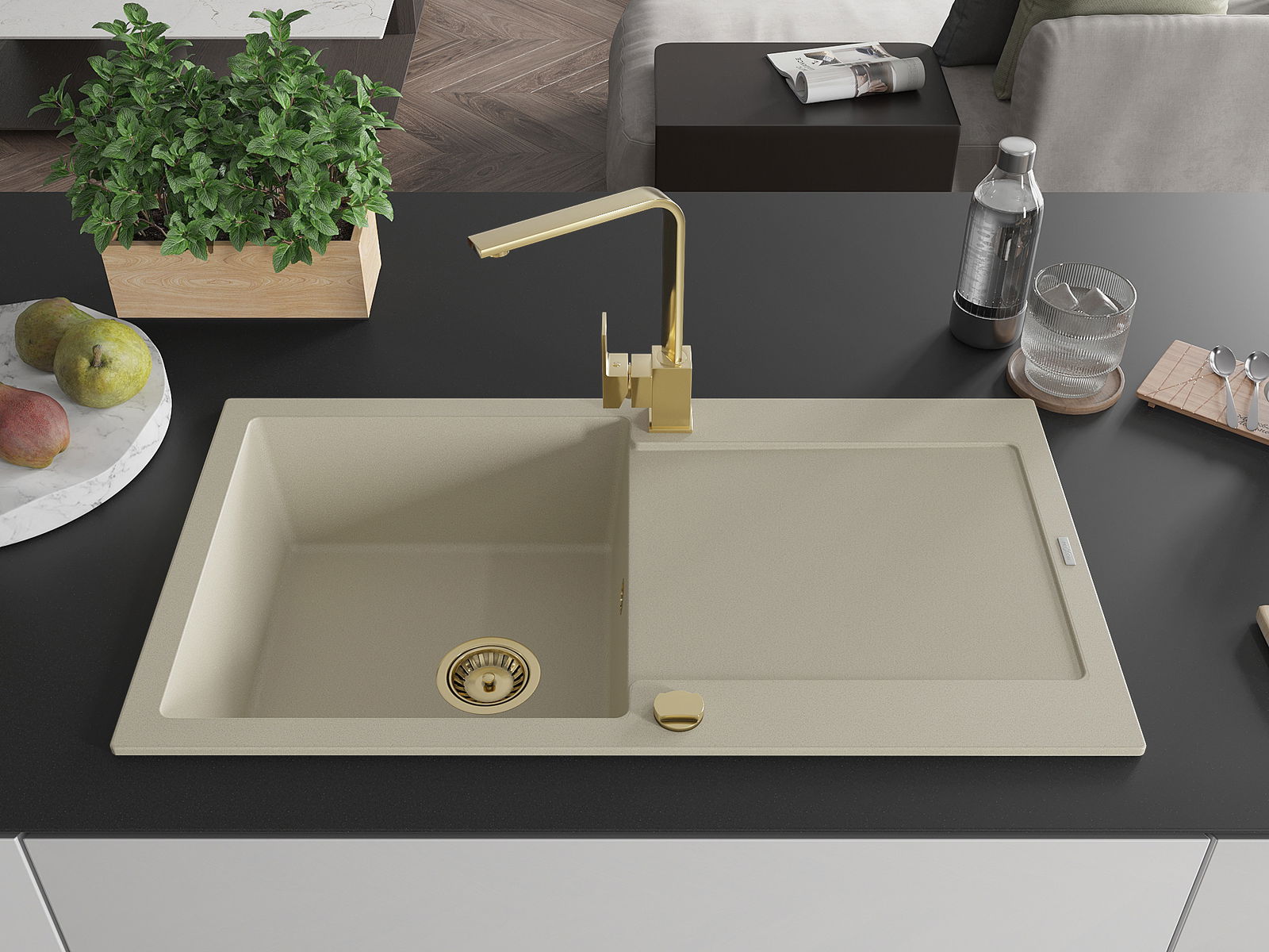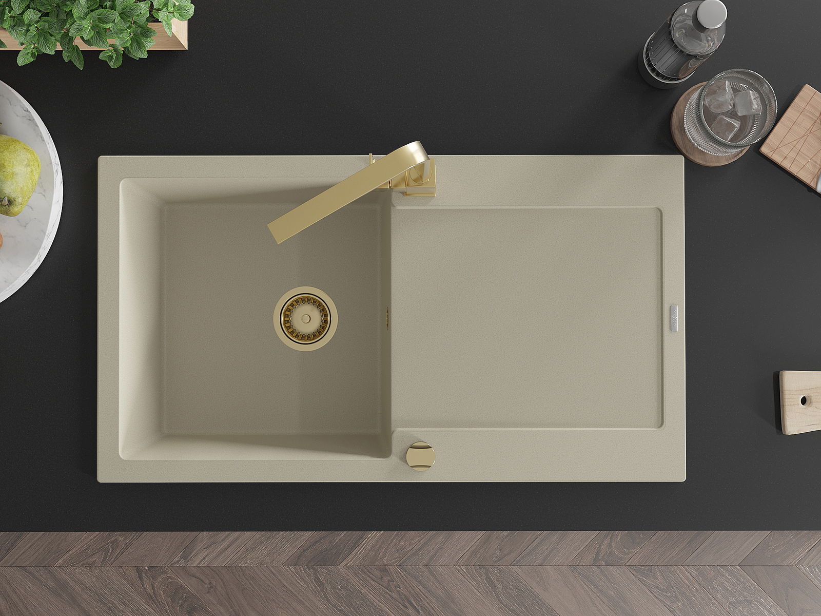 Mexen Leo kuchynský granitový drez s 1 komorou a odkvapkávačom, batéria Rita, béžová - 6501-69-670300-50