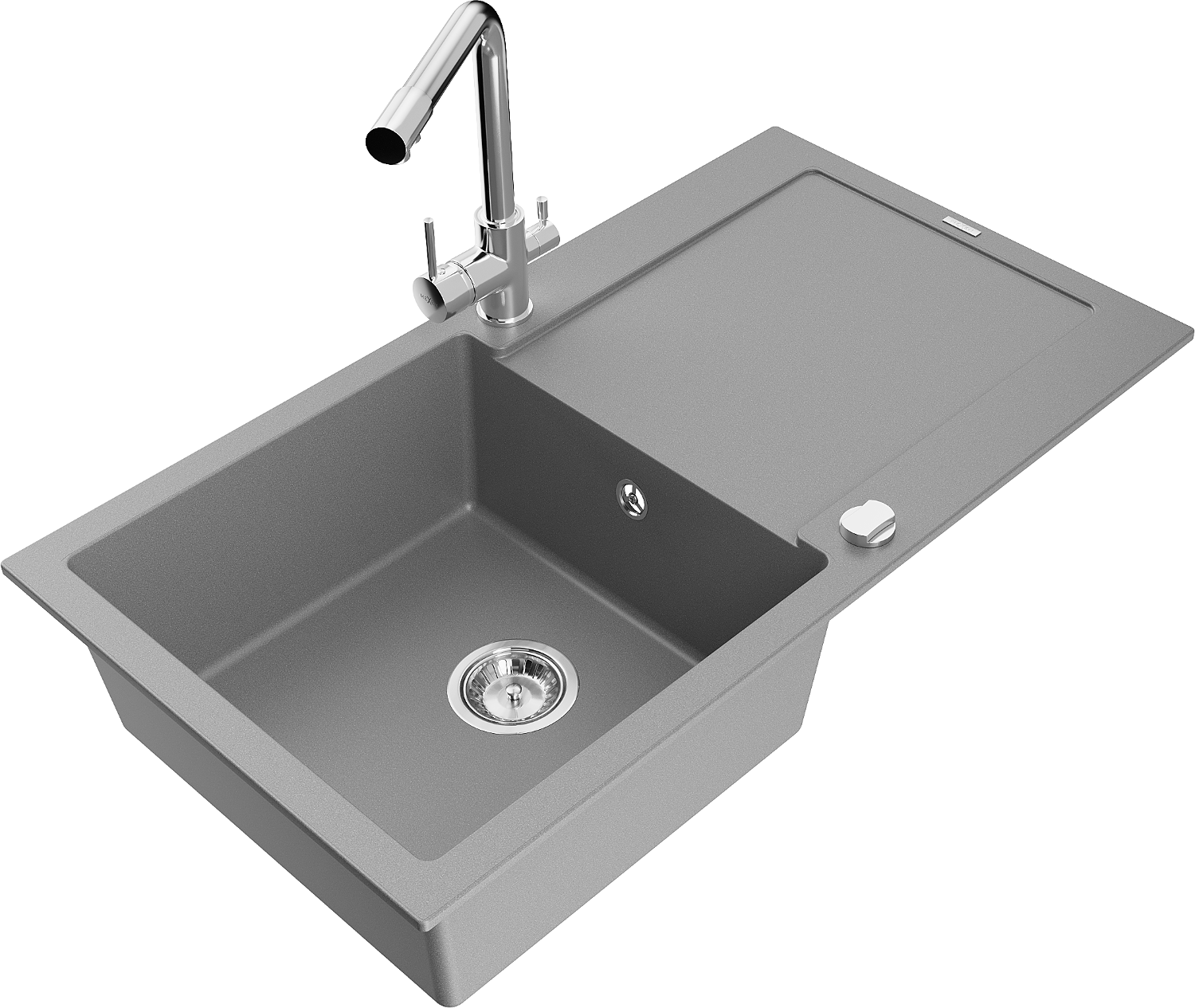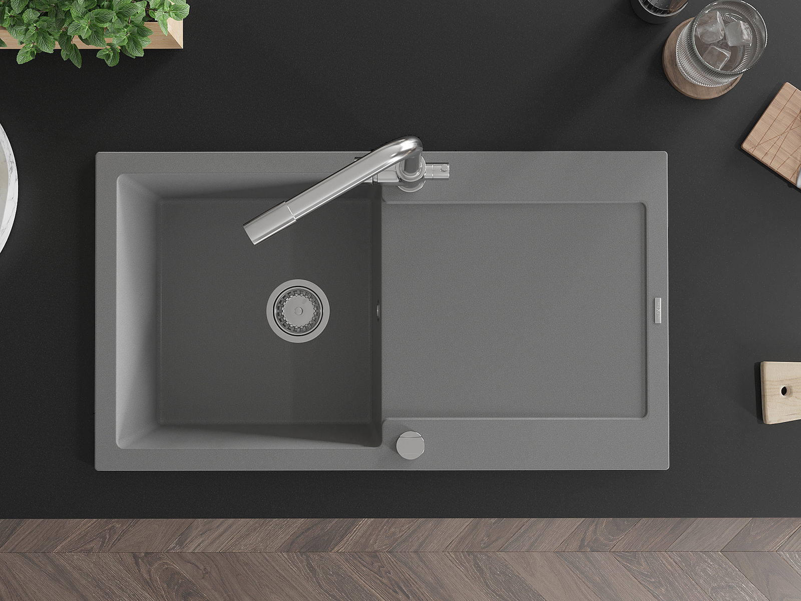 Povrch kuchynského drezu je odolný voči škvrnám a zafarbeniu, vďaka čomu sa ľahko udržiava a zachováva svoju farbu počas dlhého obdobia používania. Estetický a praktický doplnok pre každú kuchyňu.