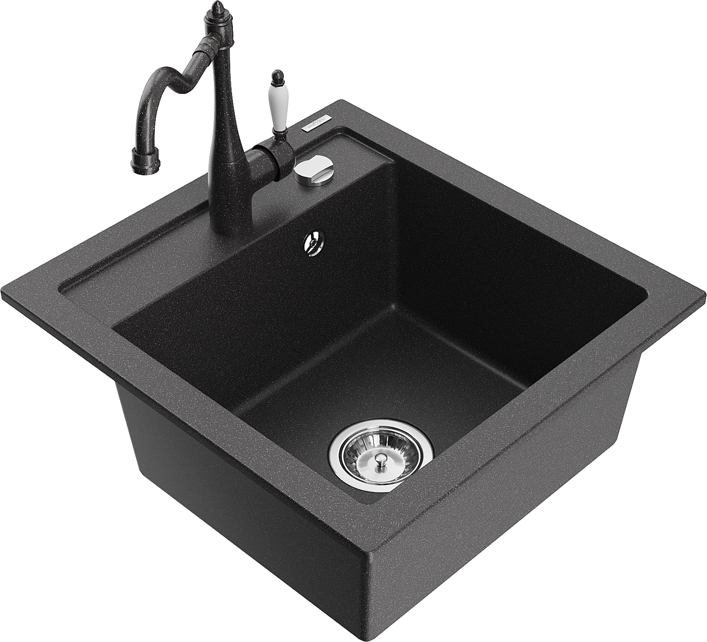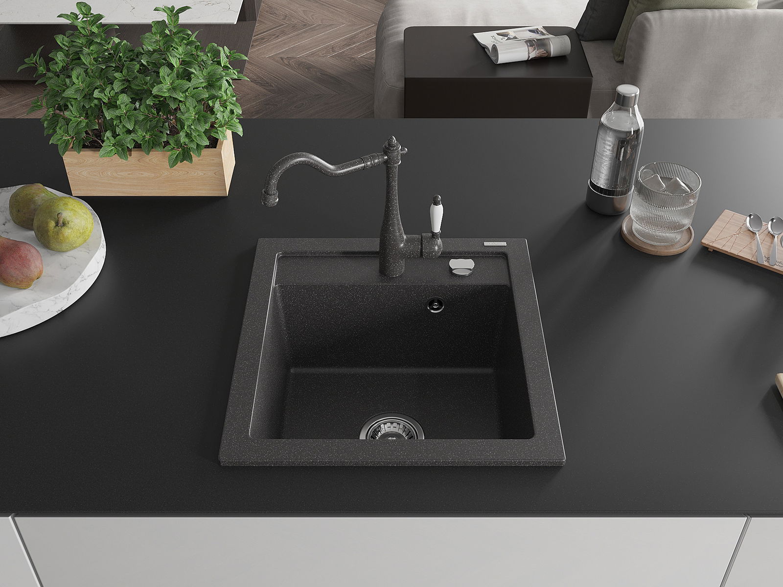 Mexen Vito granitový drez 1-komorový s kuchynskou batériou Carla, čierny škvrnitý - 6503-76-670700-76