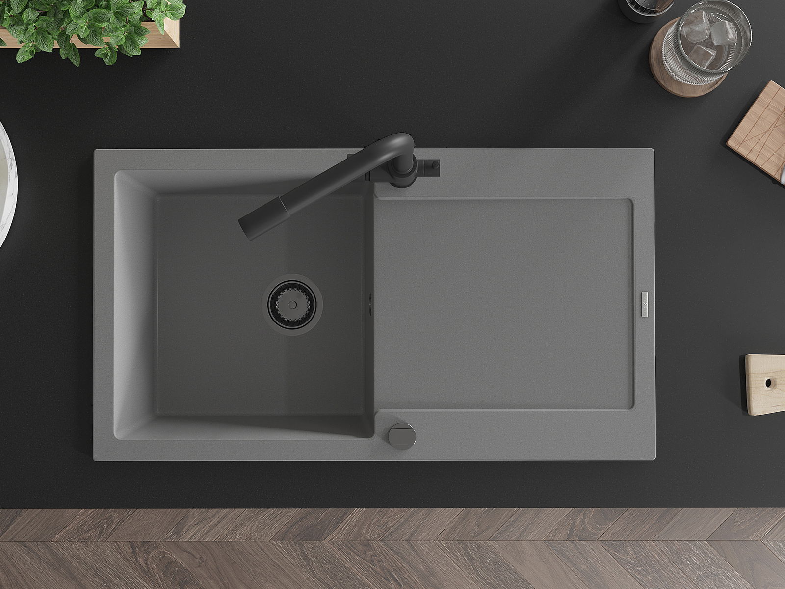 Povrch umývadla je odolný voči škvrnám a sfarbeniu, vďaka čomu sa ľahko čistí a zachováva si svoju farbu po dlhú dobu. Estetický a prakticky dopĺňajúci každú kuchyňu.