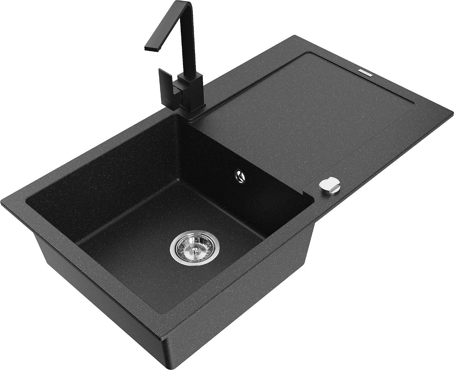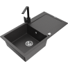 Mexen Leo granitový 1-komorový drez s odkvapkávačom a kuchynskou batériou Rita, čierny/strieborný metalik - 6501-73-670300-70