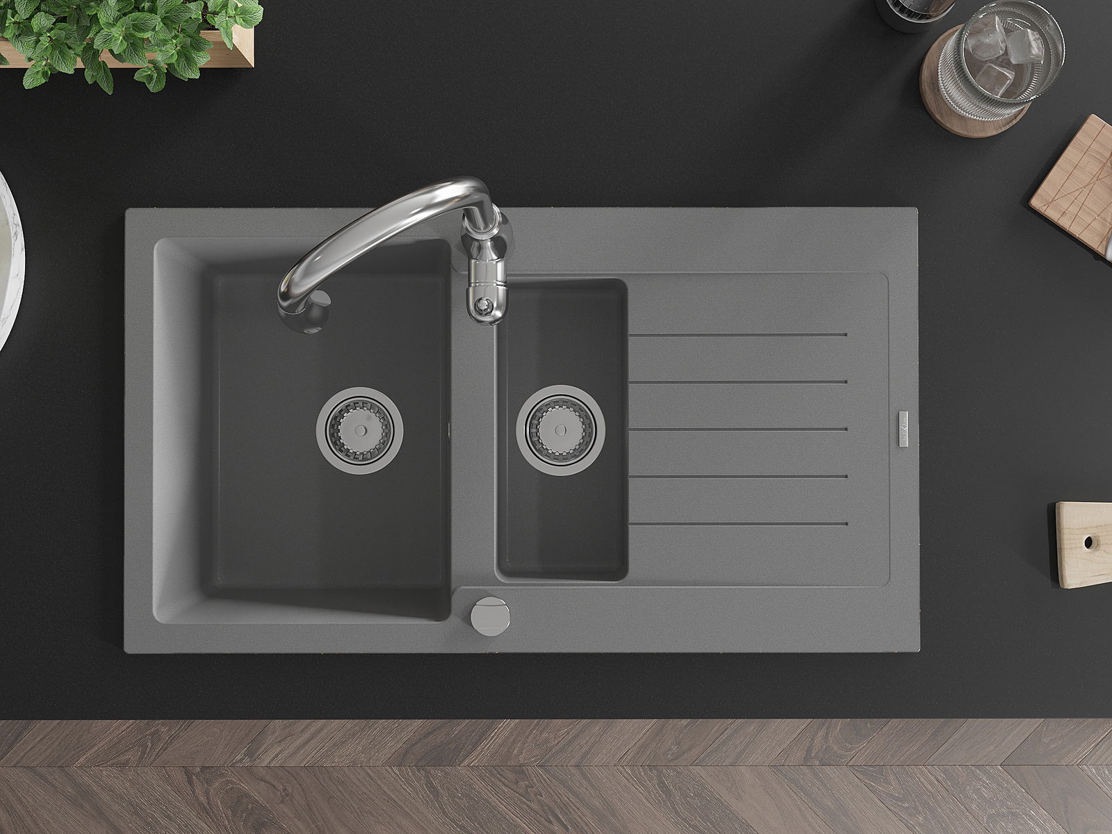 Povrch umývadla je odolný voči škvrnám a sfarbeniu, vďaka čomu sa ľahko čistí a zachováva si svoju farbu po dlhú dobu. Estetický a prakticky dopĺňajúci každú kuchyňu.