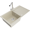Povrch kuchynského drezu je odolný voči škvrnám a zafarbeniu, vďaka čomu sa ľahko udržiava a zachováva svoju farbu počas dlhého obdobia používania. Estetický a praktický doplnok pre každú kuchyňu.