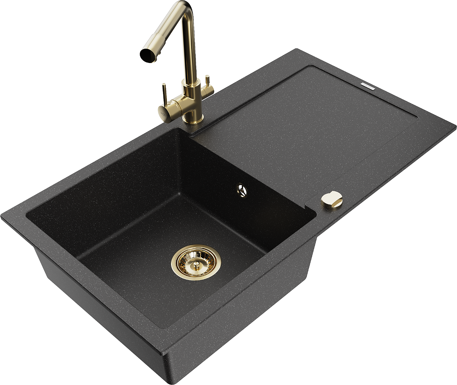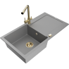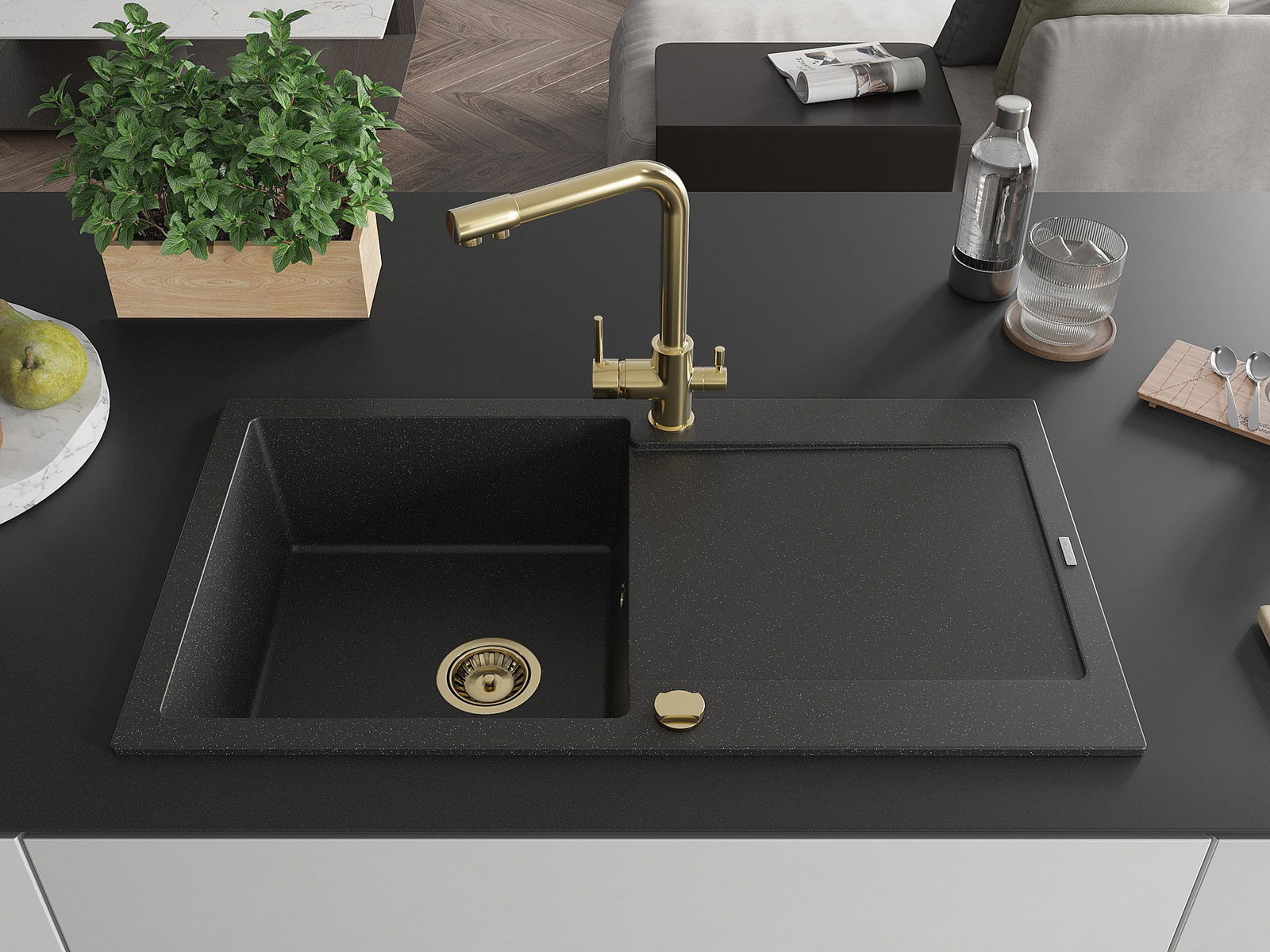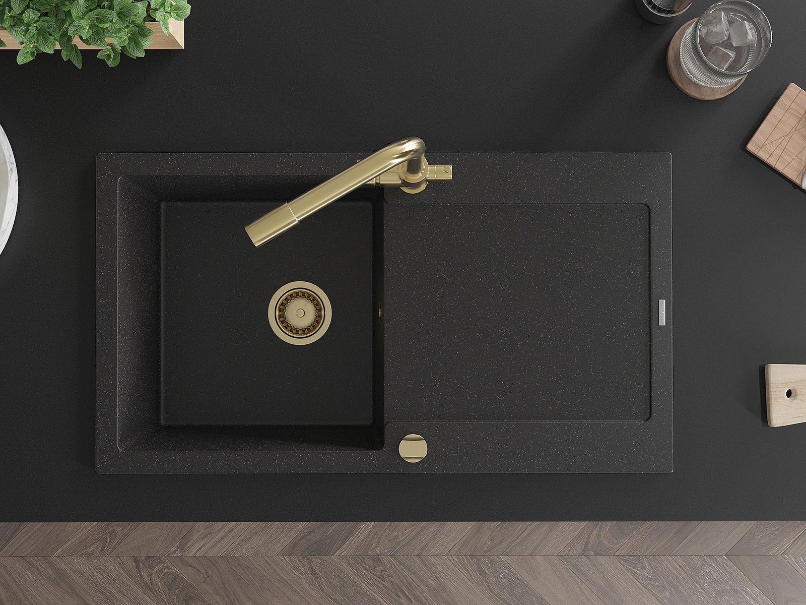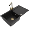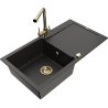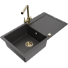 Mexen Leo granitový drez 1-komorový s odkvapkávačom a kuchynskou batériou Duero, čierny/strieborný metalik