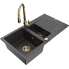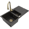 Mexen Matias žulový drez 1,5-komorový s odkvapkávačom a kuchynskou batériou Savita, čierny/strieborný - 6502-73-672601-50