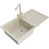 Povrch kuchynského drezu je odolný voči škvrnám a zafarbeniu, vďaka čomu sa ľahko udržiava a zachováva svoju farbu počas dlhého obdobia používania. Estetický a praktický doplnok pre každú kuchyňu.