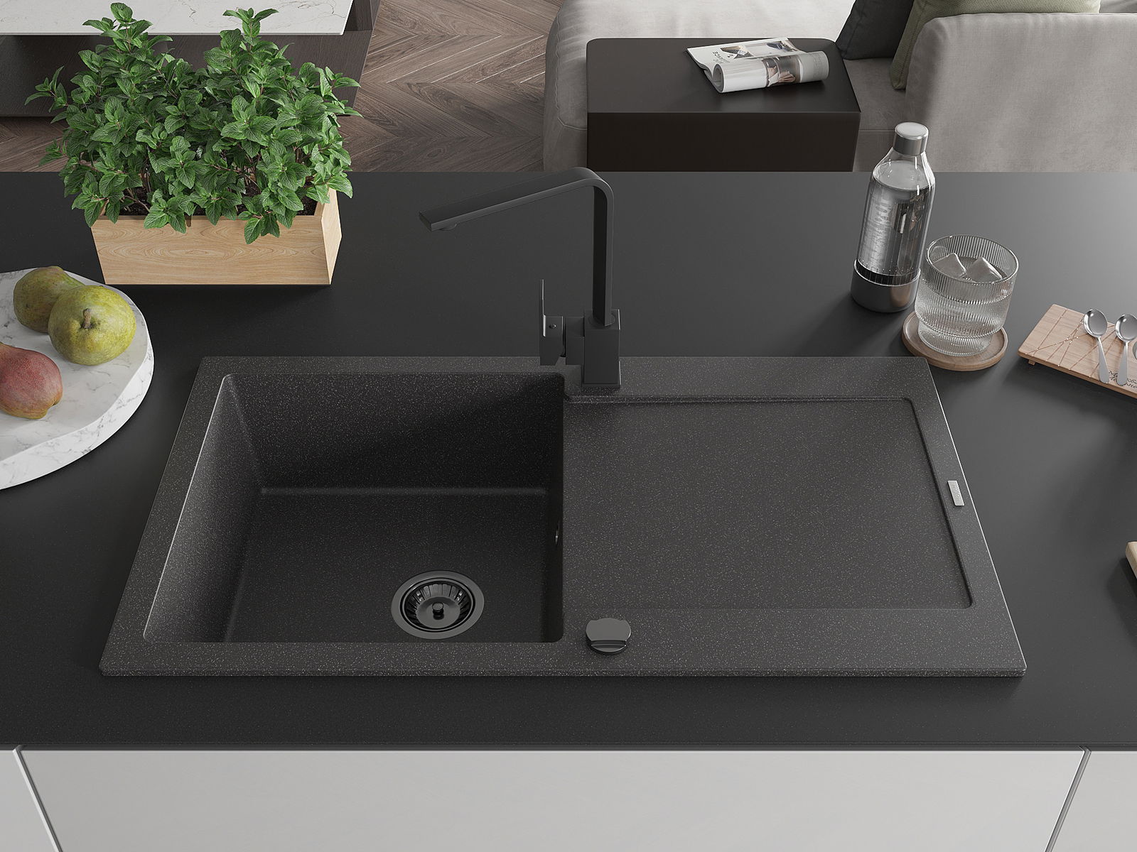 Drez bol vyrobený z vysoko kvalitného granitu. Predstavuje elegantné, ale predovšetkým praktické doplnenie každej kuchyne, nezávisle od jej štýlu. Vysoká kvalita a trvácnosť granitu zaisťujú dlhodobé používanie.