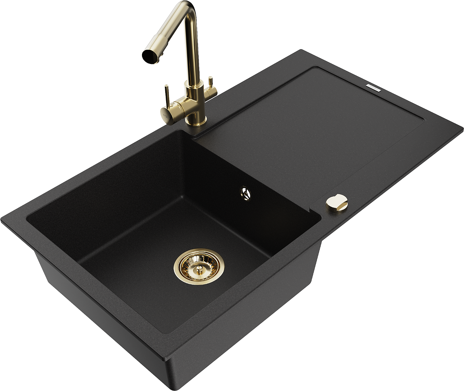 Mexen Leo granitový drez 1-komorový s odkvapkávačom a kuchynskou batériou Duero, čierny - 6501-77-671600-50