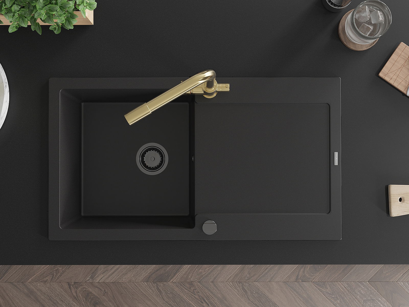 Povrch umývadla je odolný voči škvrnám a sfarbeniu, vďaka čomu sa ľahko čistí a zachováva si svoju farbu po dlhú dobu. Estetický a prakticky dopĺňajúci každú kuchyňu.
