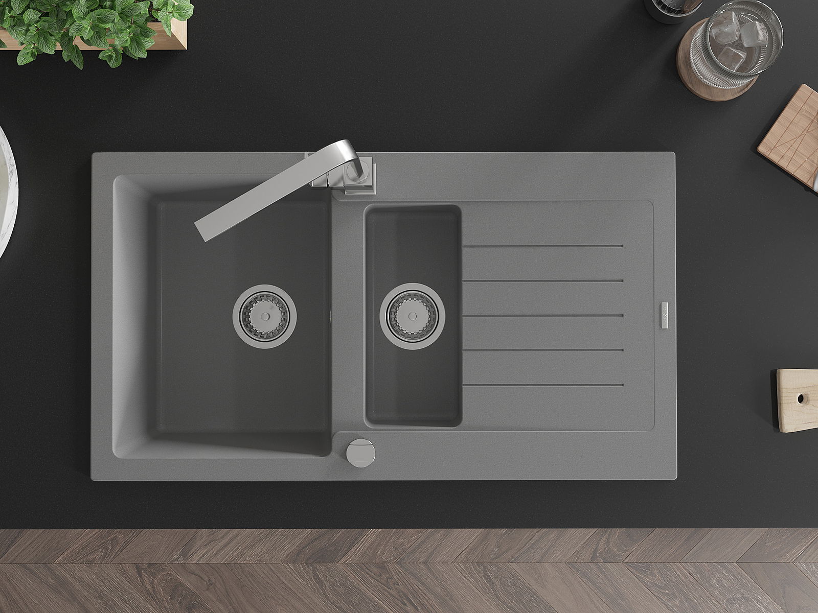 Povrch umývadla je odolný voči škvrnám a sfarbeniu, vďaka čomu sa ľahko čistí a zachováva si svoju farbu po dlhú dobu. Estetický a prakticky dopĺňajúci každú kuchyňu.