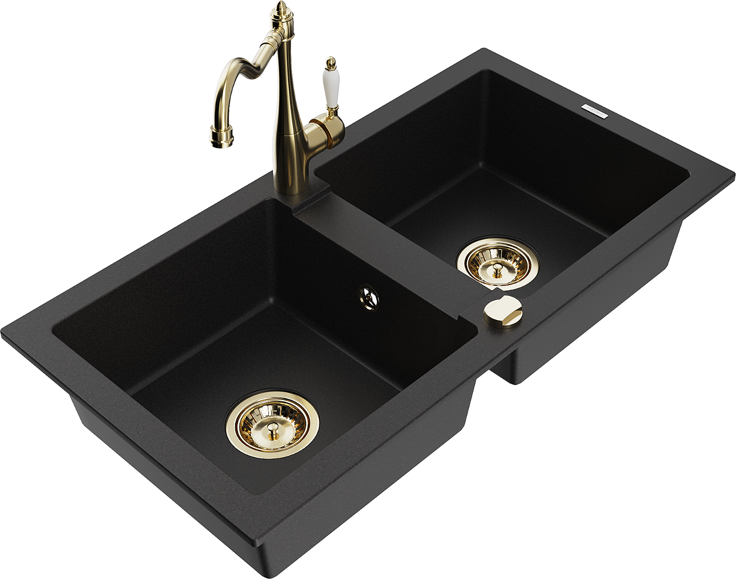 Mexen Mario žulový drez 2-komorový s kuchynskou batériou Carla, čierny - 6504-77-670700-50
