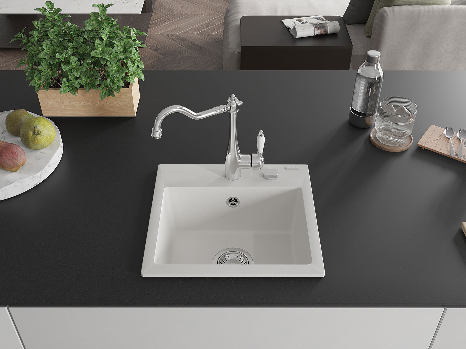 Povrch umývadla je odolný voči škvrnám a sfarbeniu, vďaka čomu sa ľahko čistí a zachováva si svoju farbu po dlhú dobu. Estetický a prakticky dopĺňajúci každú kuchyňu.