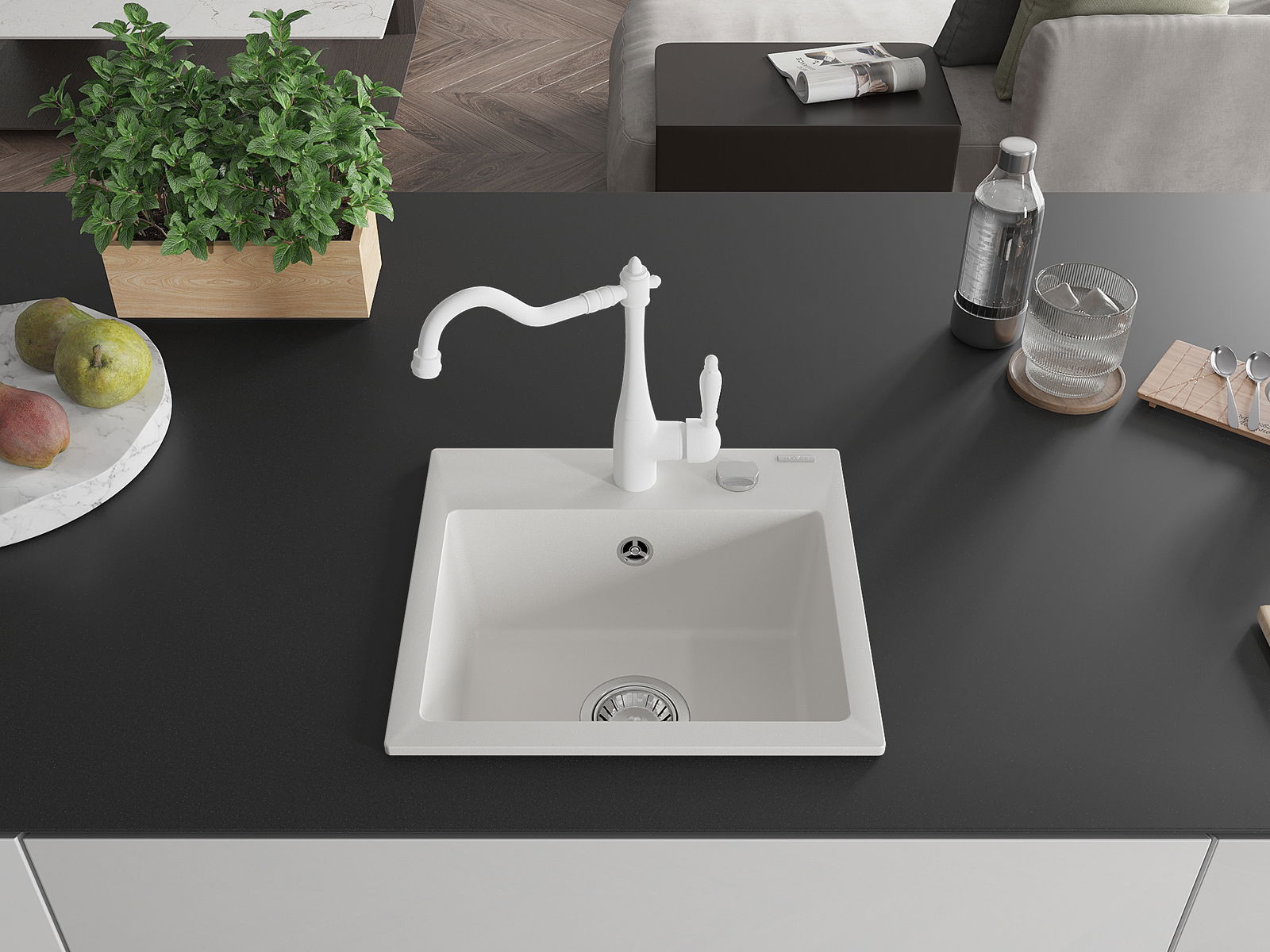 Povrch umývadla je odolný voči škvrnám a sfarbeniu, vďaka čomu sa ľahko čistí a zachováva si svoju farbu po dlhú dobu. Estetický a prakticky dopĺňajúci každú kuchyňu.