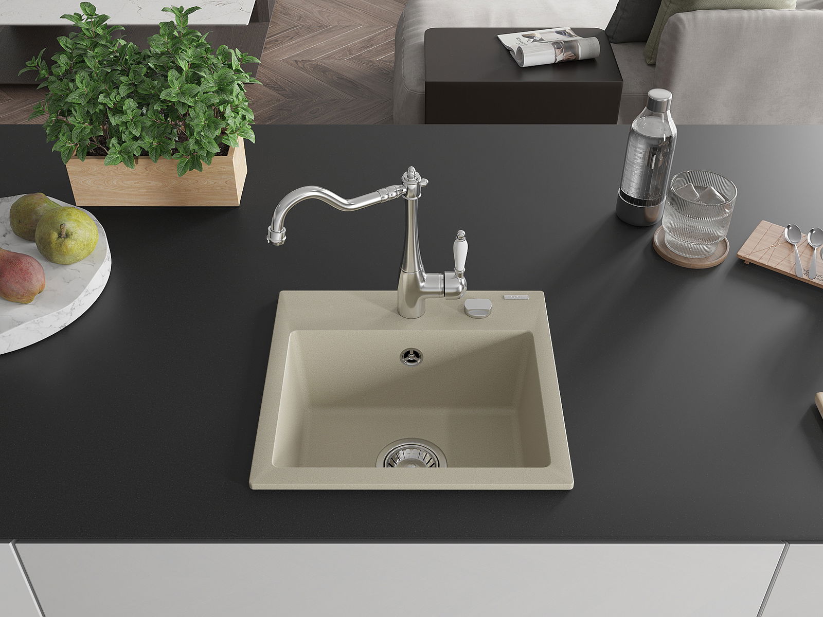 Povrch umývadla je odolný voči škvrnám a sfarbeniu, vďaka čomu sa ľahko čistí a zachováva si svoju farbu po dlhú dobu. Estetický a prakticky dopĺňajúci každú kuchyňu.