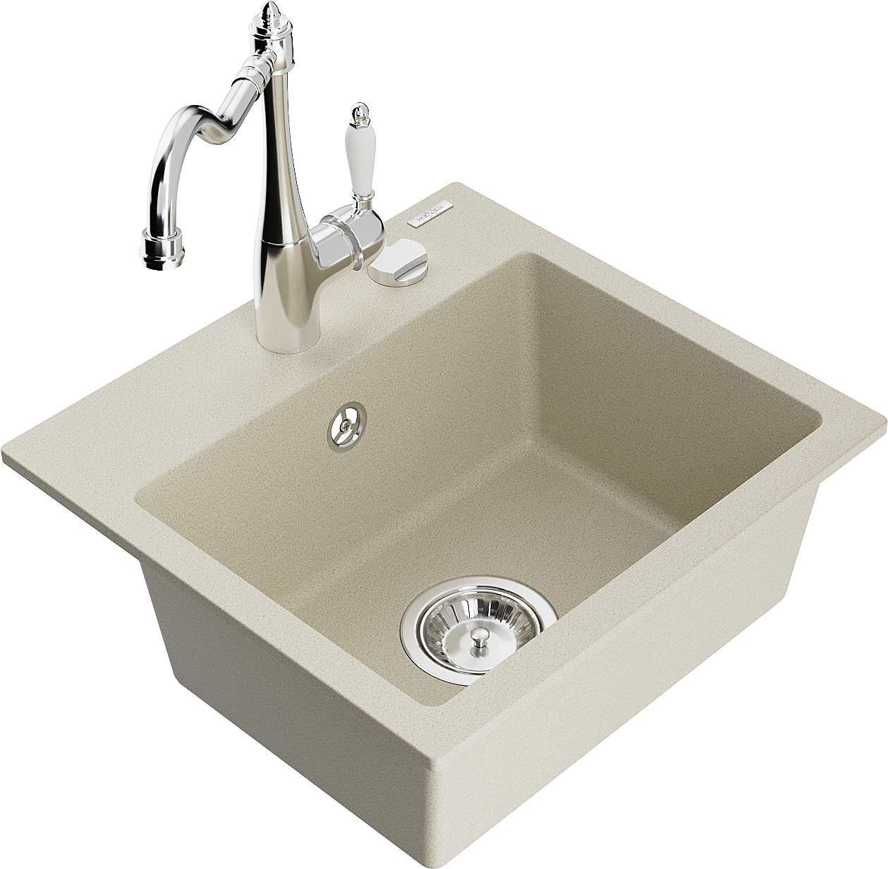 Mexen Milo jednokomorový granitový drez s kuchynskou batériou Carla, béžový - 6505-69-670700-00