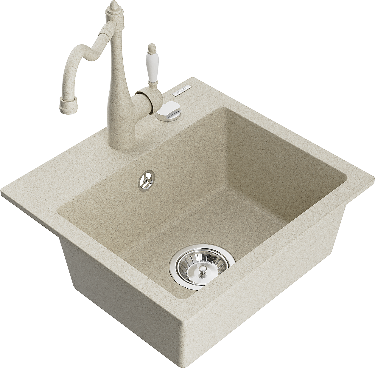 Mexen Milo 1-komorový granitový drez s kuchynskou batériou Carla, béžový - 6505-69-670700-69
