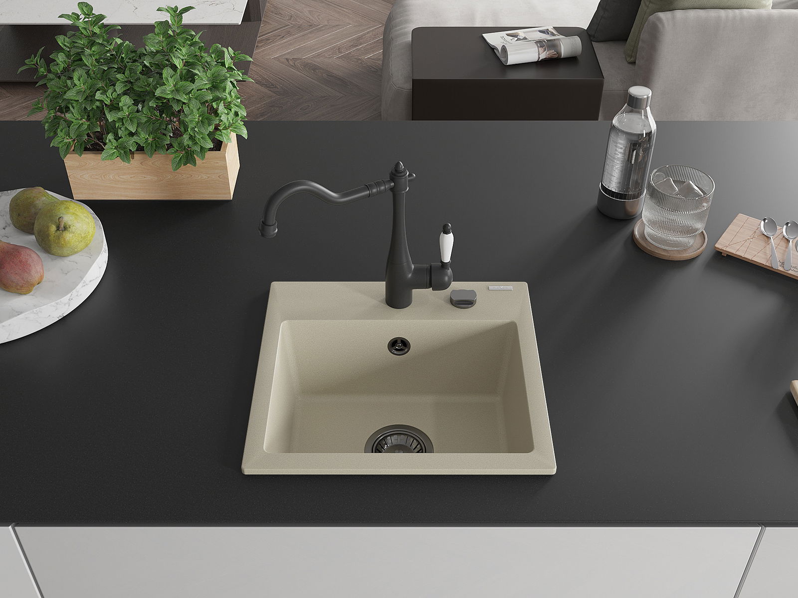 Povrch umývadla je odolný voči škvrnám a sfarbeniu, vďaka čomu sa ľahko čistí a zachováva si svoju farbu po dlhú dobu. Estetický a prakticky dopĺňajúci každú kuchyňu.
