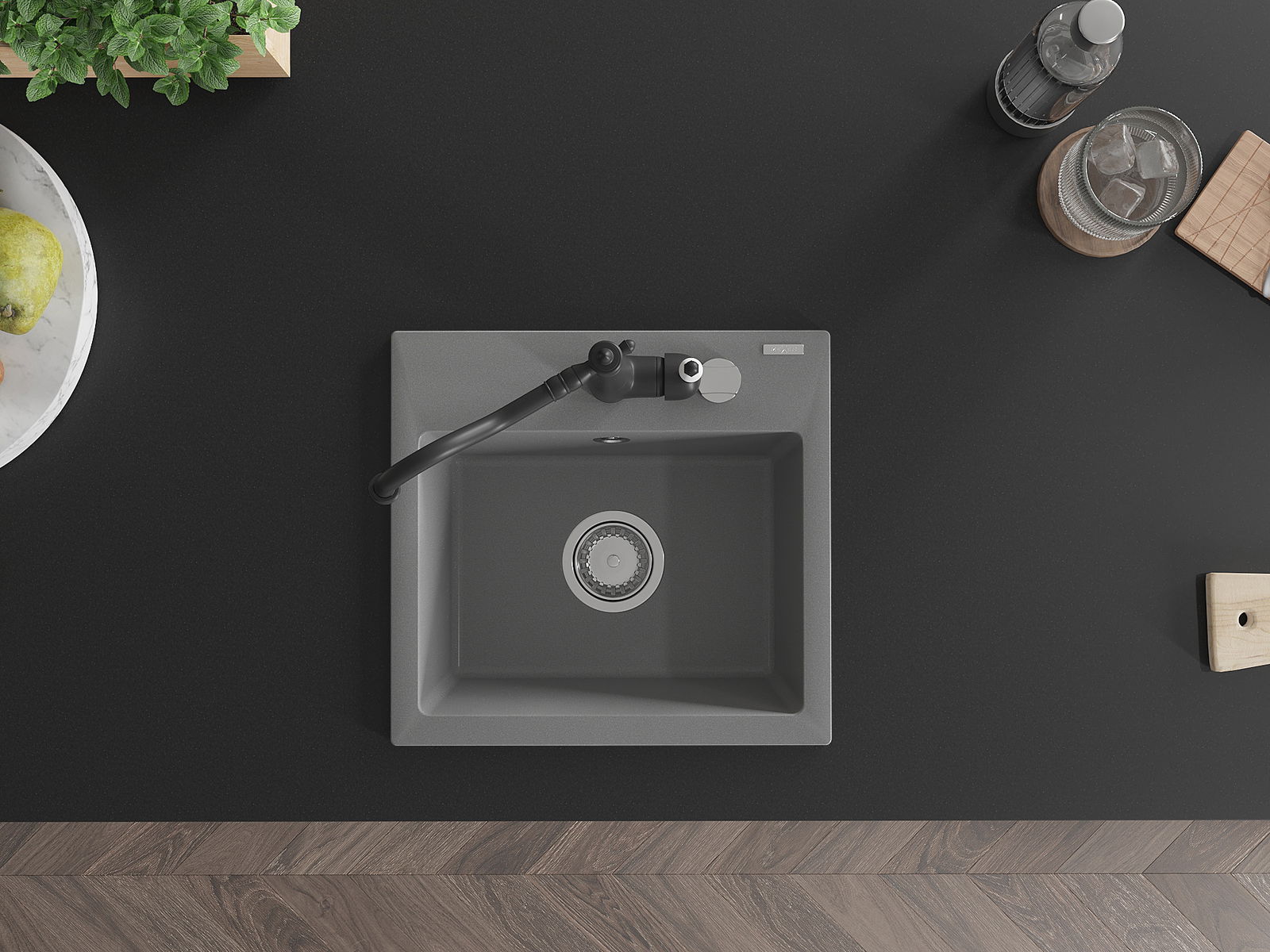 Povrch kuchynského drezu je odolný voči škvrnám a zafarbeniu, vďaka čomu sa ľahko udržiava a zachováva svoju farbu počas dlhého obdobia používania. Estetický a praktický doplnok pre každú kuchyňu.