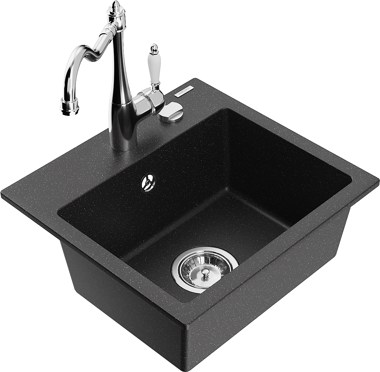 Mexen Milo granitový drez 1-komorový s kuchynskou batériou Carla, čierny/strieborný metalik - 6505-73-670700-00