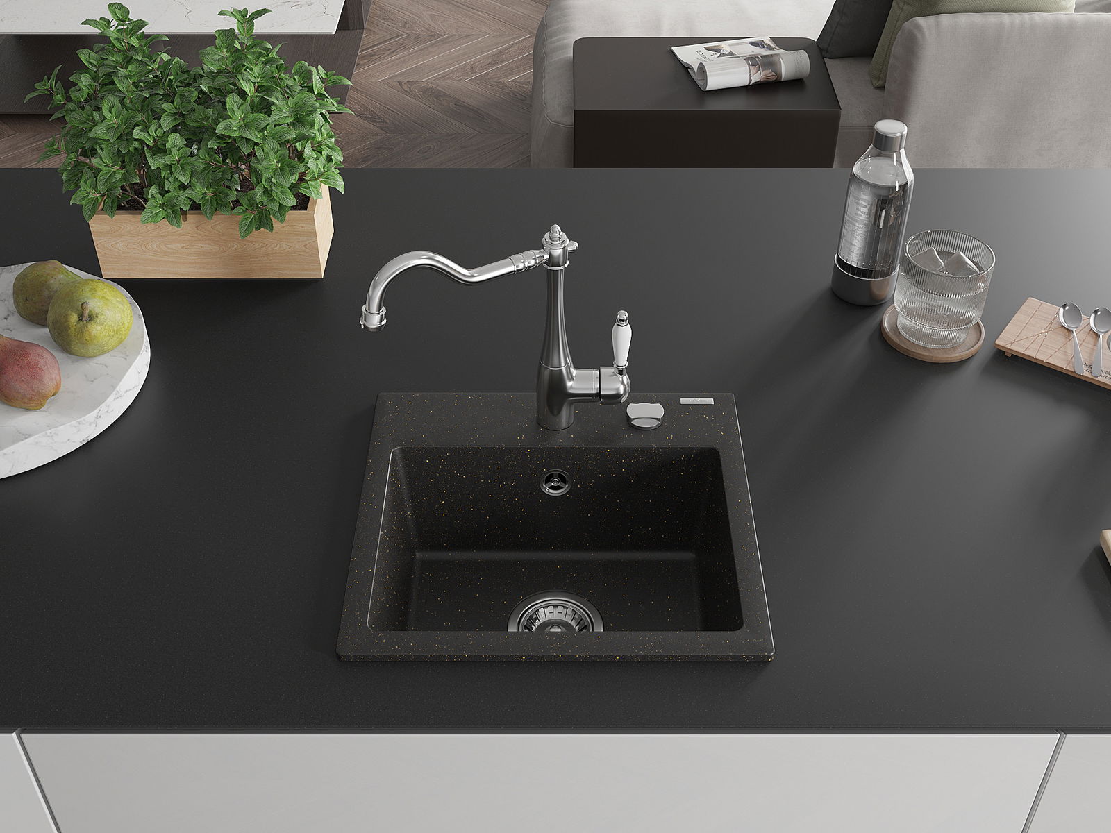Povrch umývadla je odolný voči škvrnám a sfarbeniu, vďaka čomu sa ľahko čistí a zachováva si svoju farbu po dlhú dobu. Estetický a prakticky dopĺňajúci každú kuchyňu.