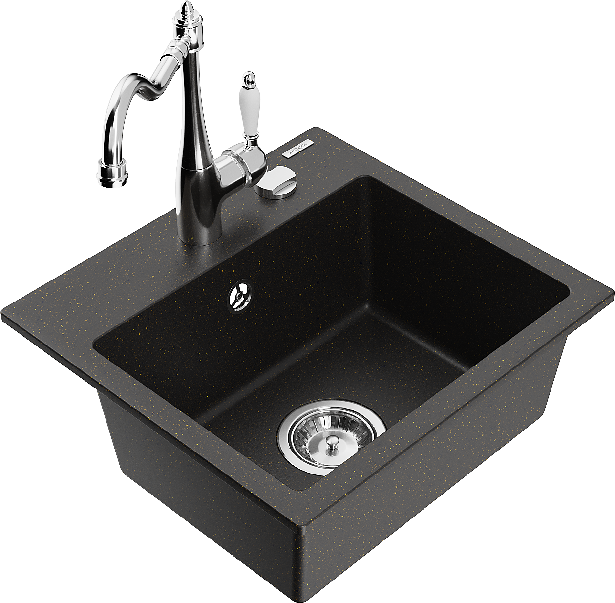 Mexen Milo granitový drez s 1 komorou s kuchynskou batériou Carla, čierno/zlatý metalický - 6505-75-670700-00