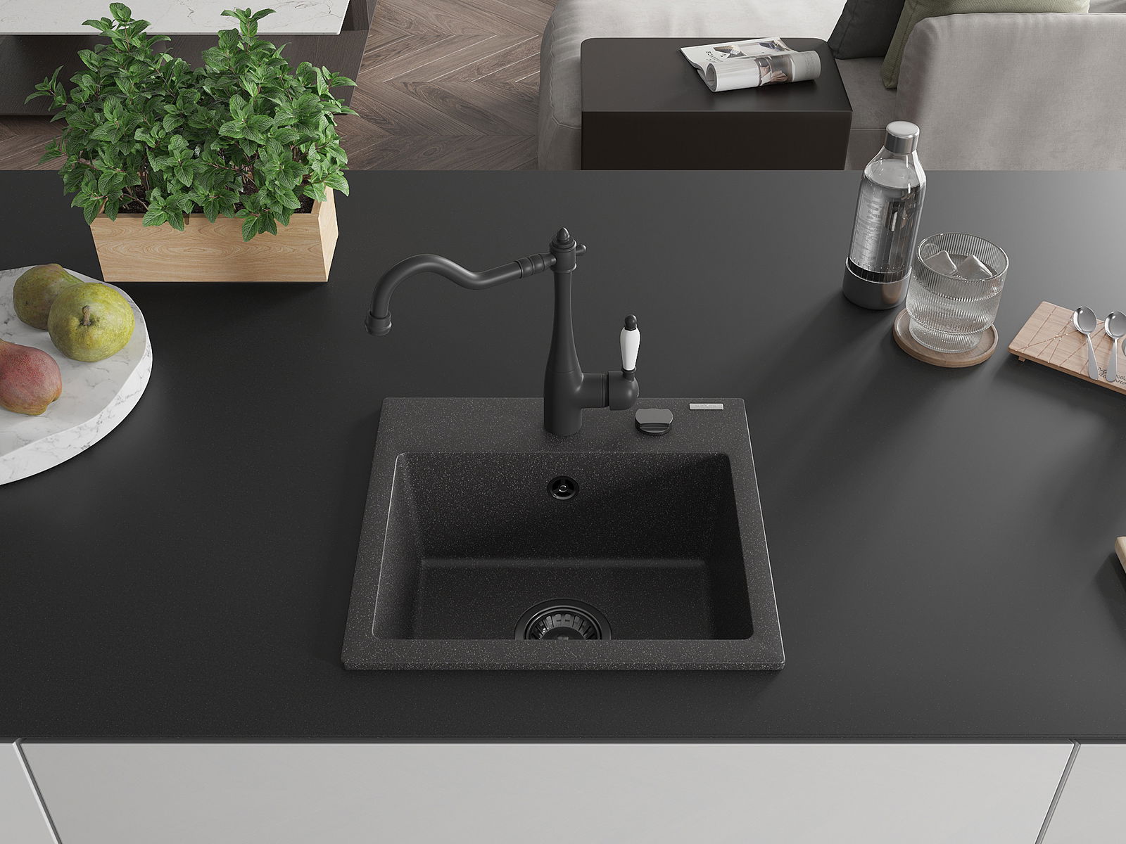 Povrch umývadla je odolný voči škvrnám a sfarbeniu, vďaka čomu sa ľahko čistí a zachováva si svoju farbu po dlhú dobu. Estetický a prakticky dopĺňajúci každú kuchyňu.