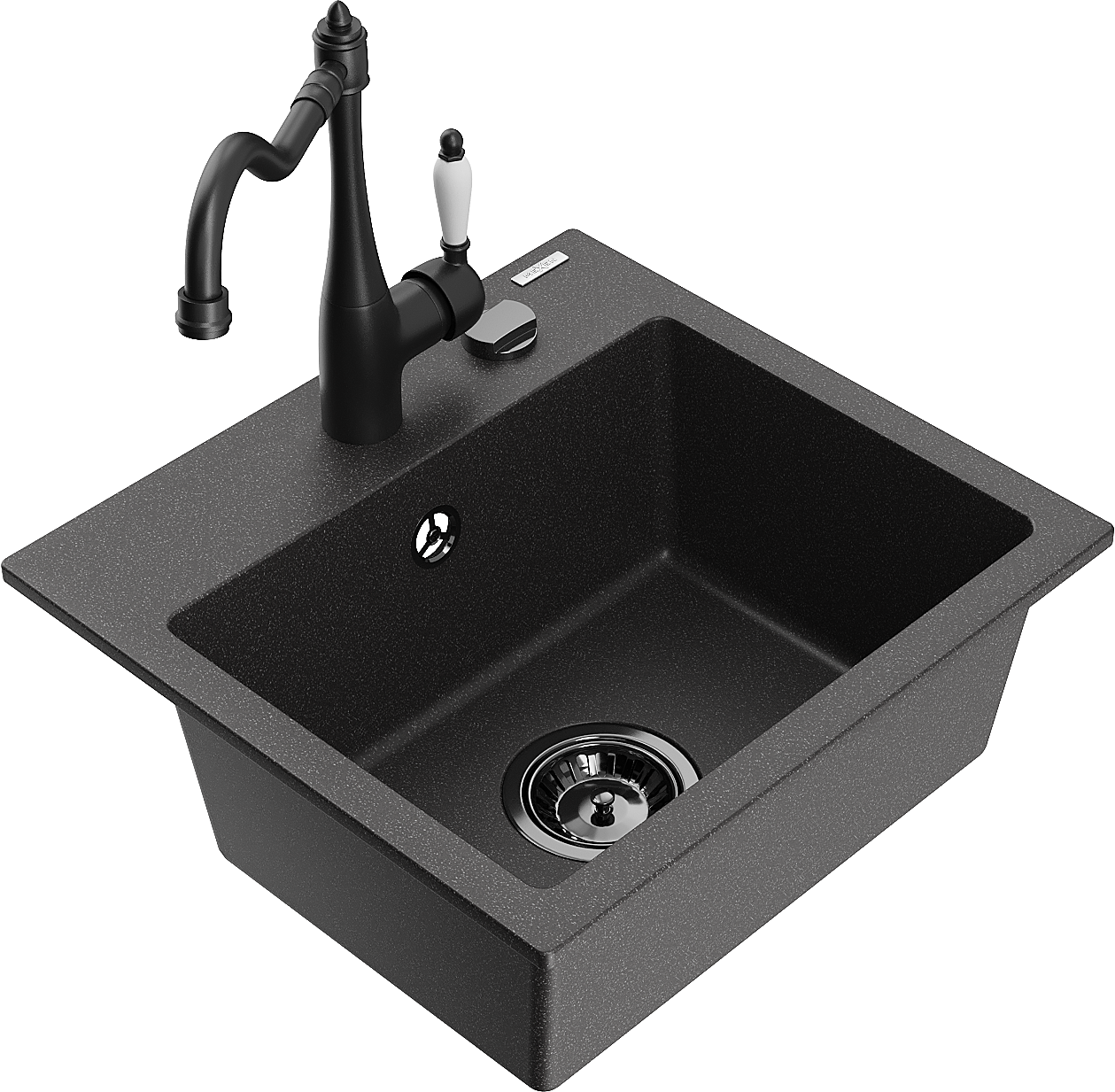 Mexen Milo žulový drez s jednou komorou s kuchynskou batériou Carla, čierny škvrnitý - 6505-76-670700-70-B